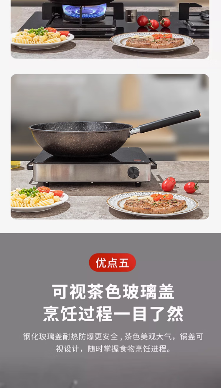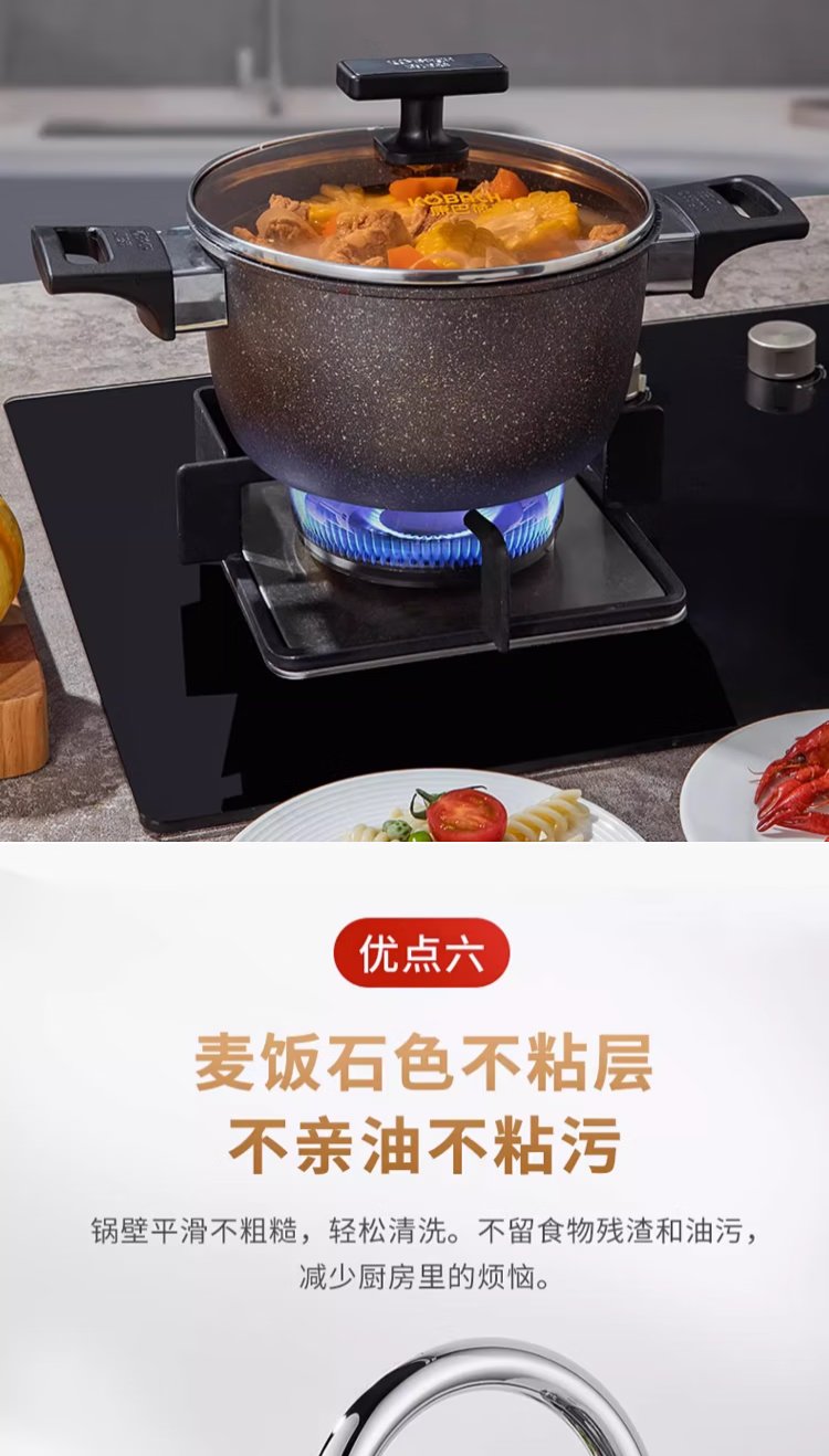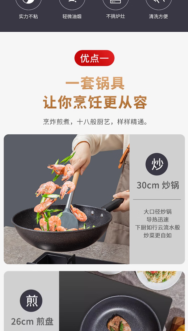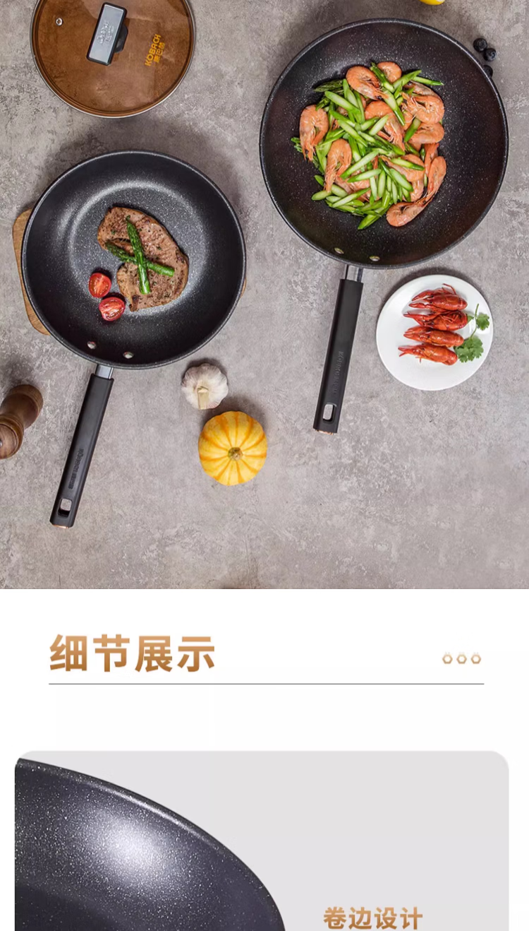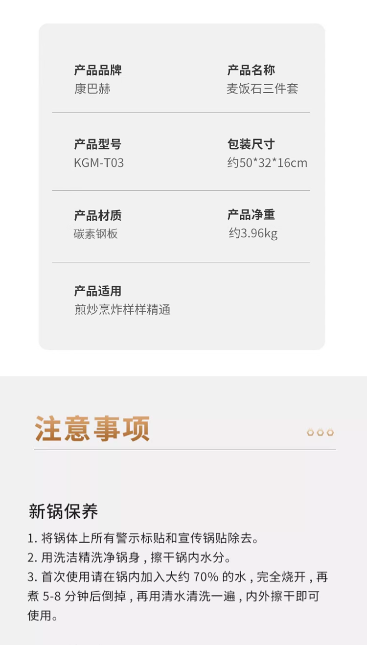 康巴赫焕新麦饭石色三件套30cm炒锅+26cm煎盘+20cm汤锅KGM-T03(14010008)套 麦饭石色