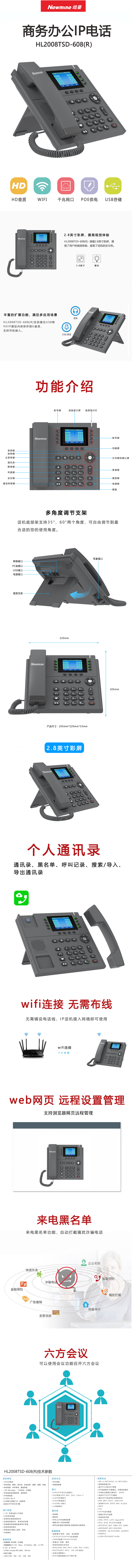 纽曼(Newmine)HL2008TSD-608(R)IP电话机商务办公 POE供电六方会议单位:台 黑色