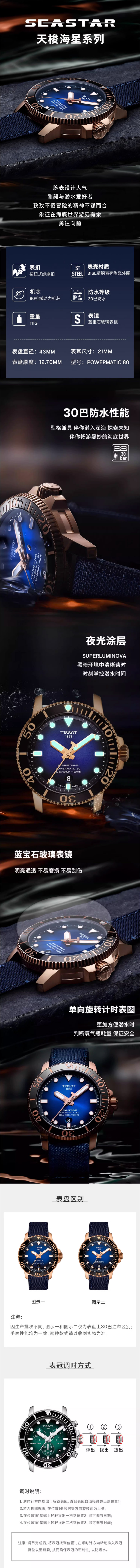 Tissot天梭 海星系列腕表 机械男表T120.407.37.041.00(单位:块) 蓝色