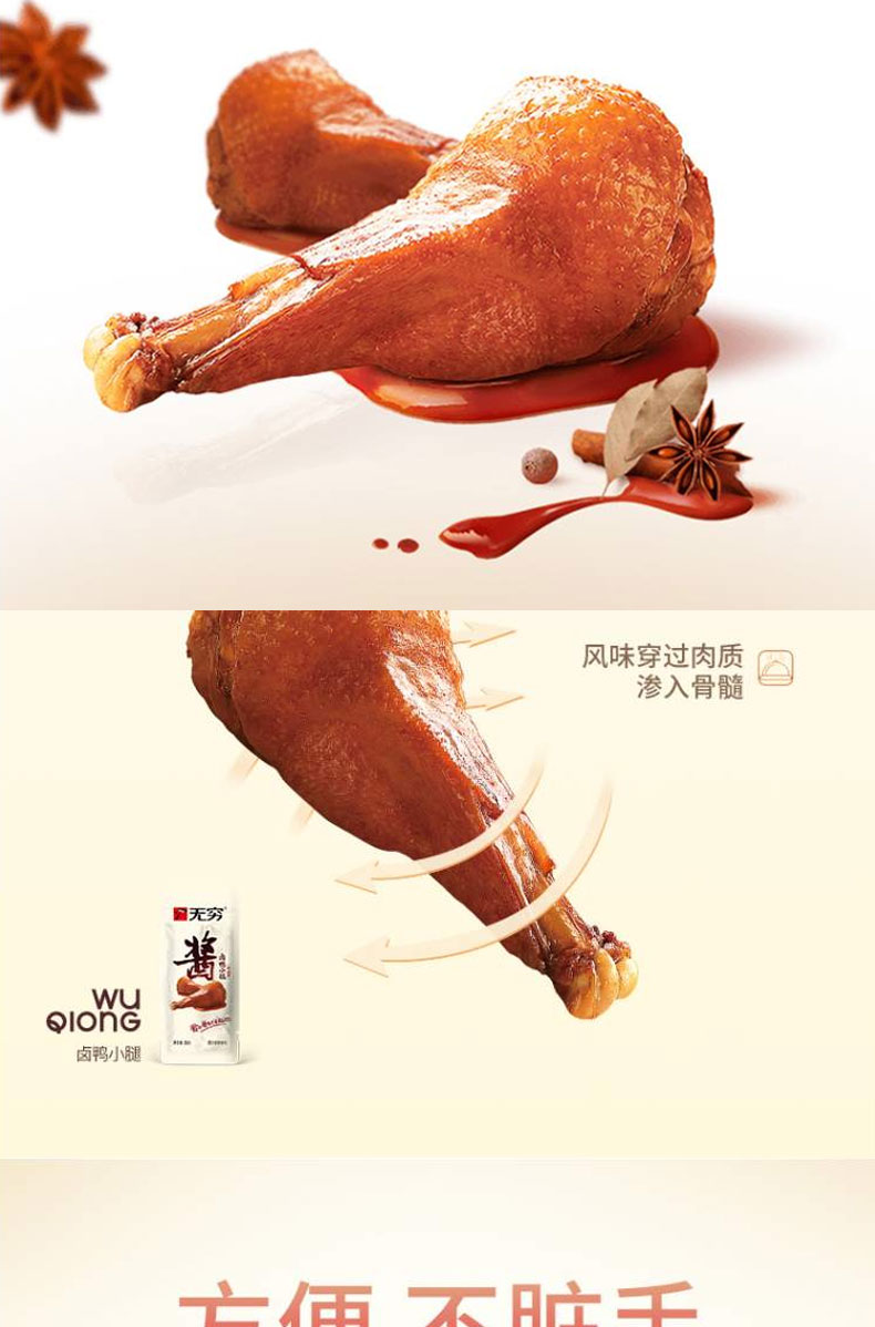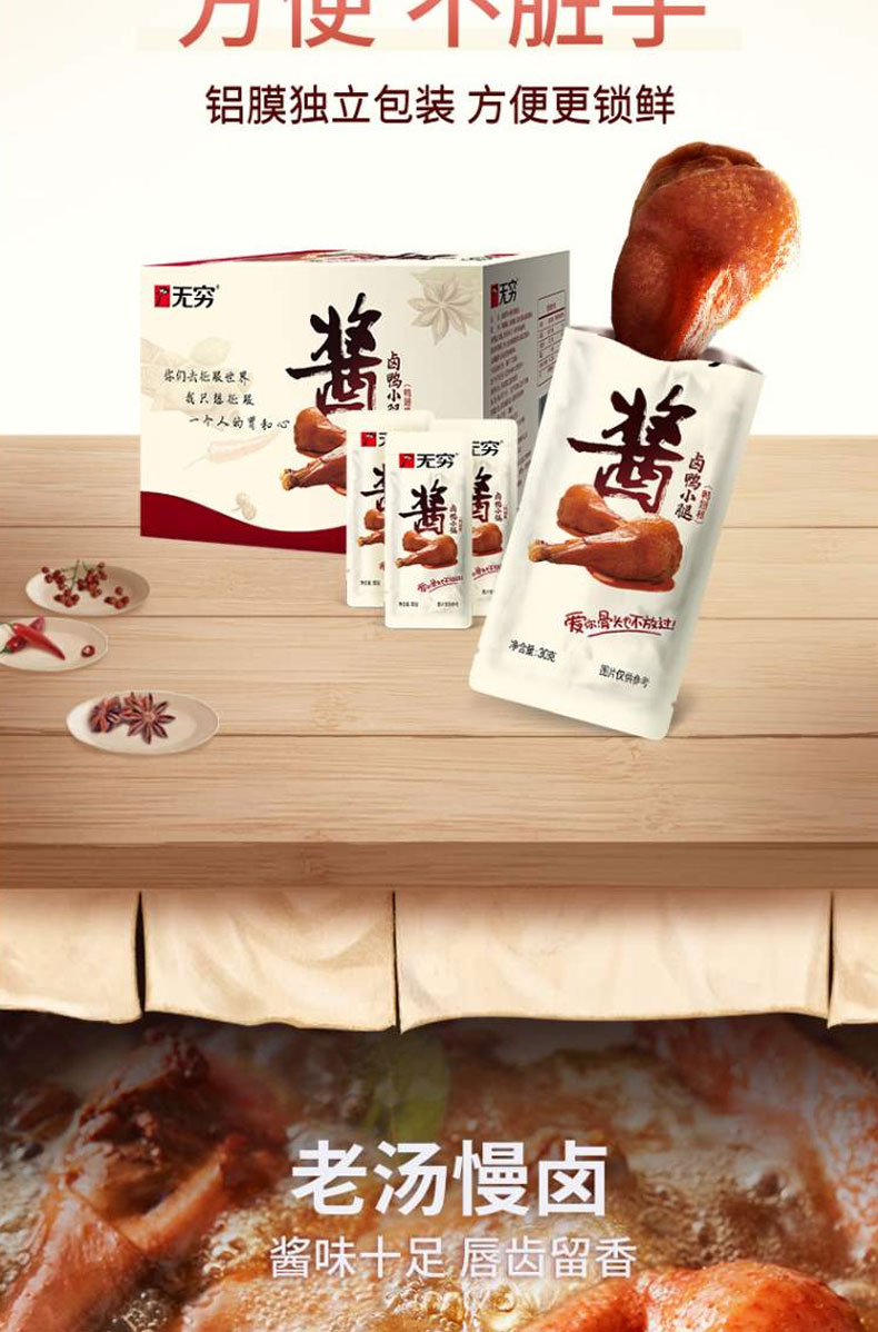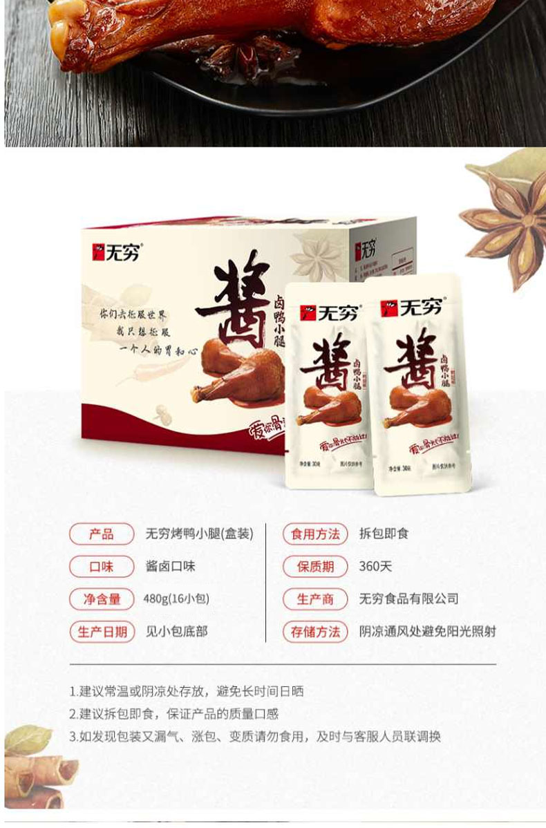 无穷食品酱卤风味鸭肉零食大鸭腿卤味零食480g酱卤鸭小腿盒装