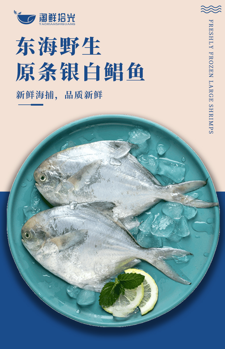【淘鲜拾光】东海野生原条银鲳鱼500克(5条)*2 .