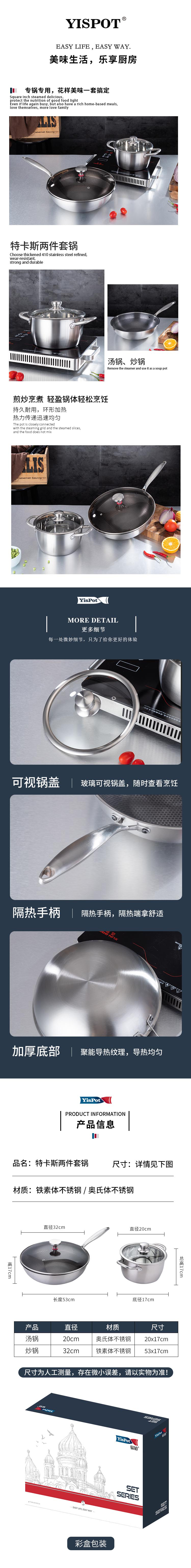 易铂 特卡斯两件套 YP-9018 30cm炒锅+20cm汤锅 不锈钢色