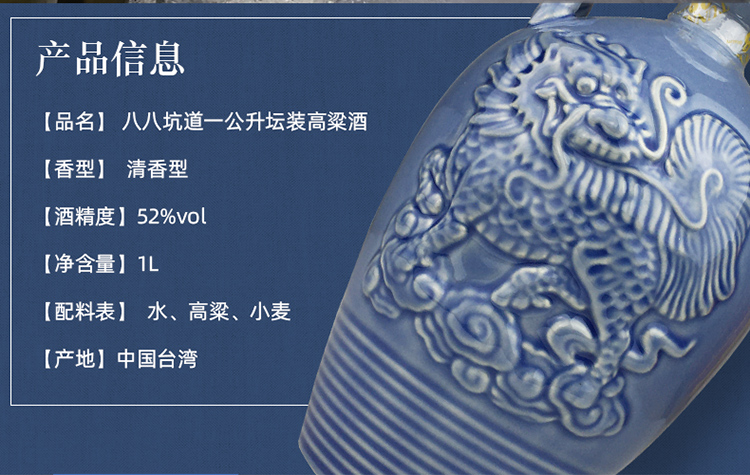 八八坑道52度一公升简装1000ml/瓶