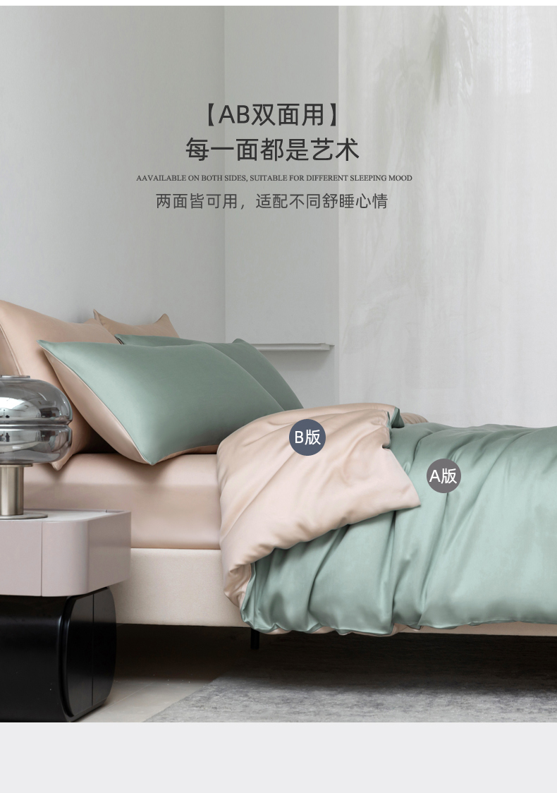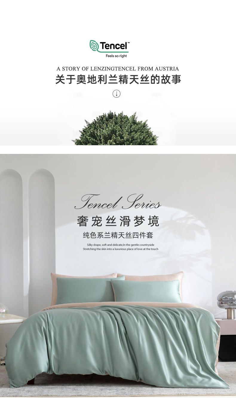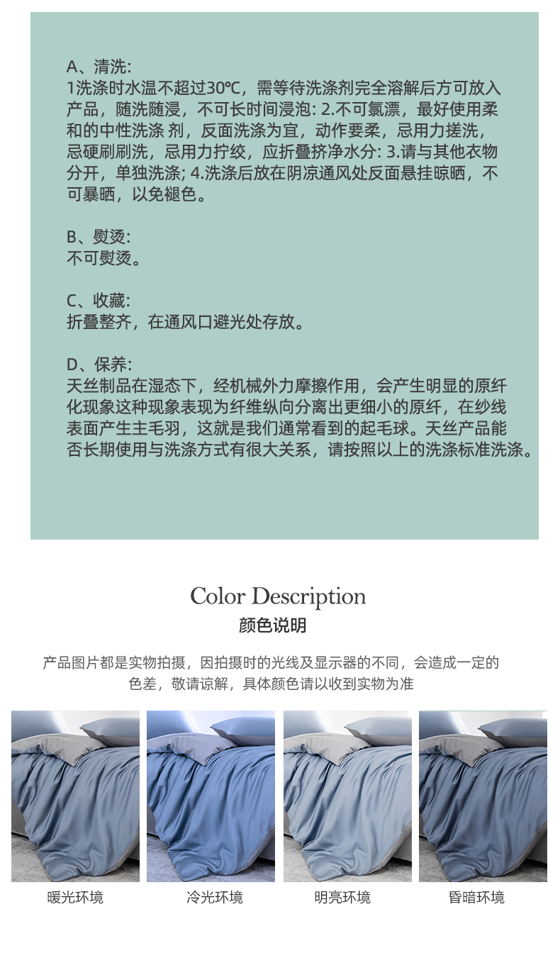 帛享家纺 100支兰精天丝四件套 单位(套)BXCXH-41851 劳伦蓝+伯爵灰 被套200*230CM四件套