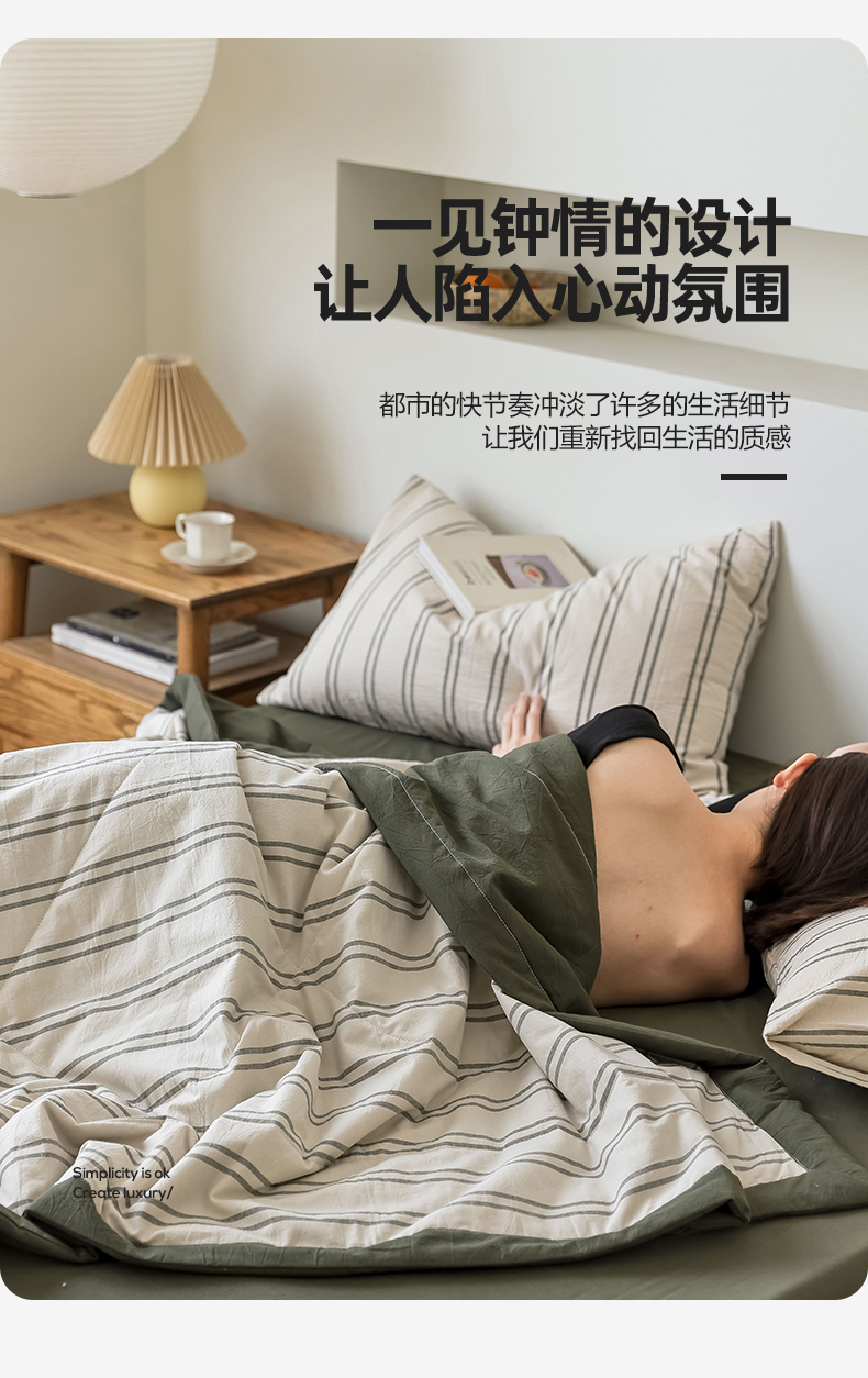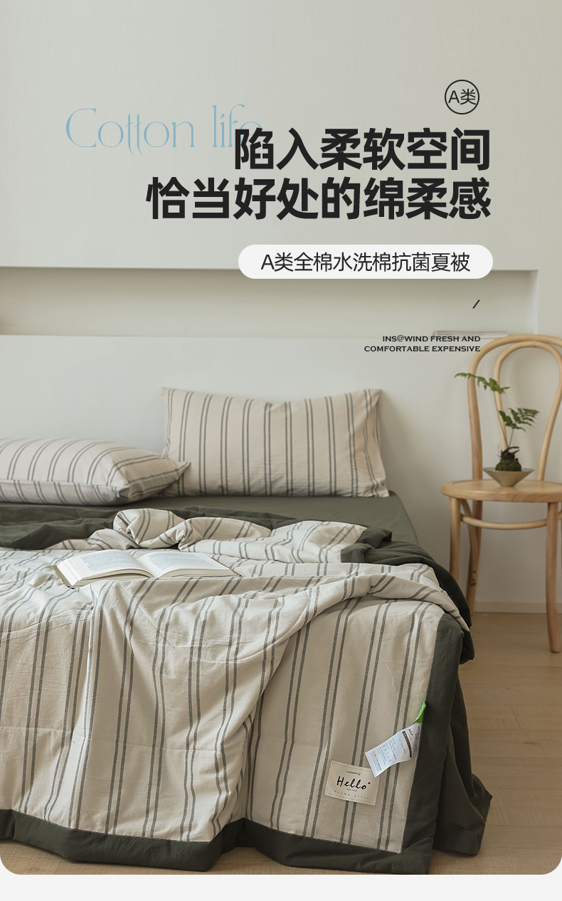 帛享家纺 全棉色织水洗棉夏被 单位(条)BXCBO-47001 中古绿条 150x200cm