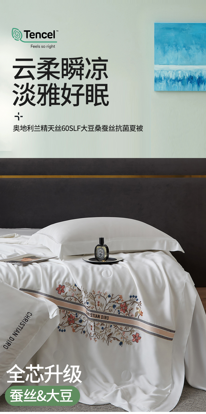 帛享家纺 兰精天丝60SLF大豆桑蚕丝抗菌夏被 单位(条)BXCTD-41301 漫妮春竹色 200*230CM