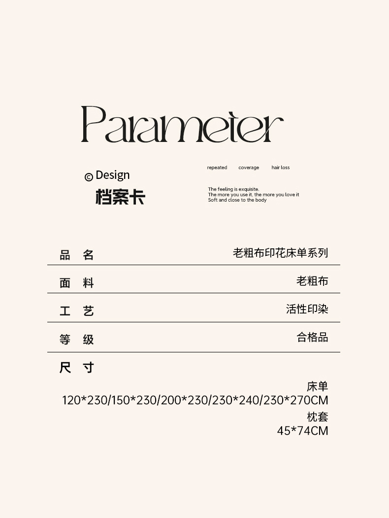 帛享家纺 纯棉老粗布床单三件套 单位(套)BXCSA-41851 落尘 席子230*240CM 枕套48*74CM*2个