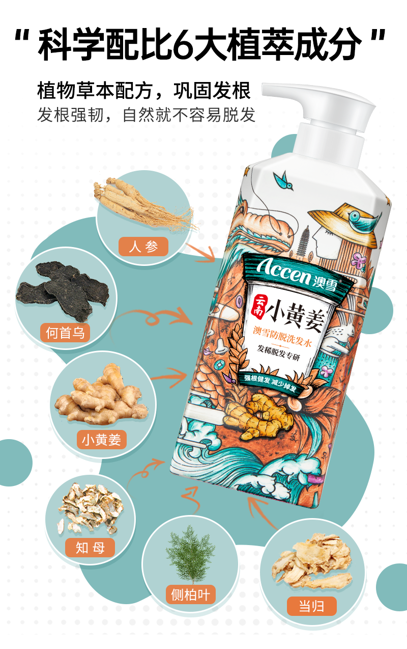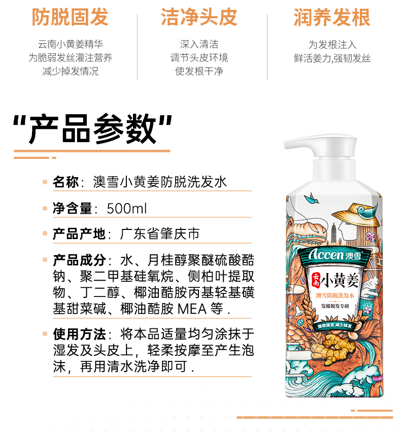 澳雪(accen)云南小黄姜防脱洗发水500ml (单位:瓶) 小黄姜防脱
