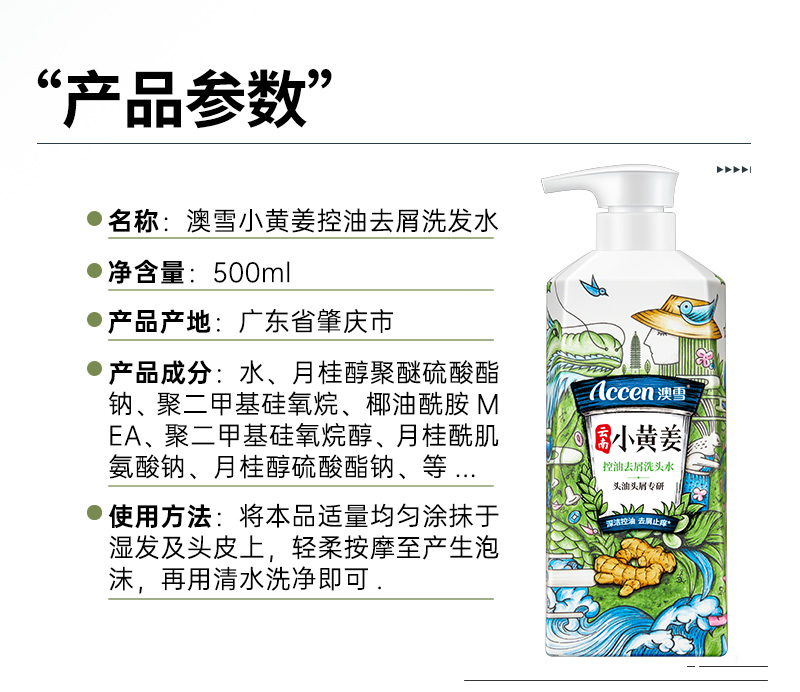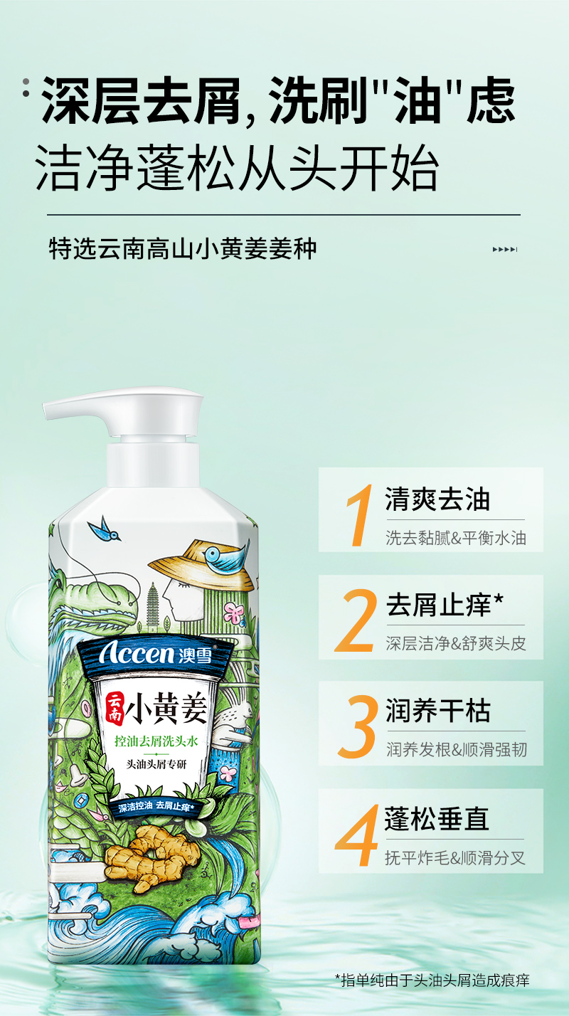澳雪(accen)云南小黄姜控油去屑洗头水500ml (单位:瓶) 控油去屑
