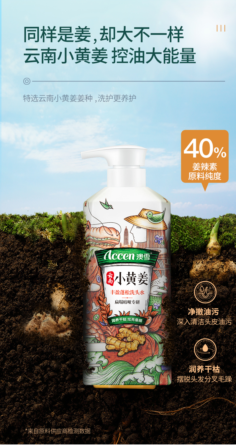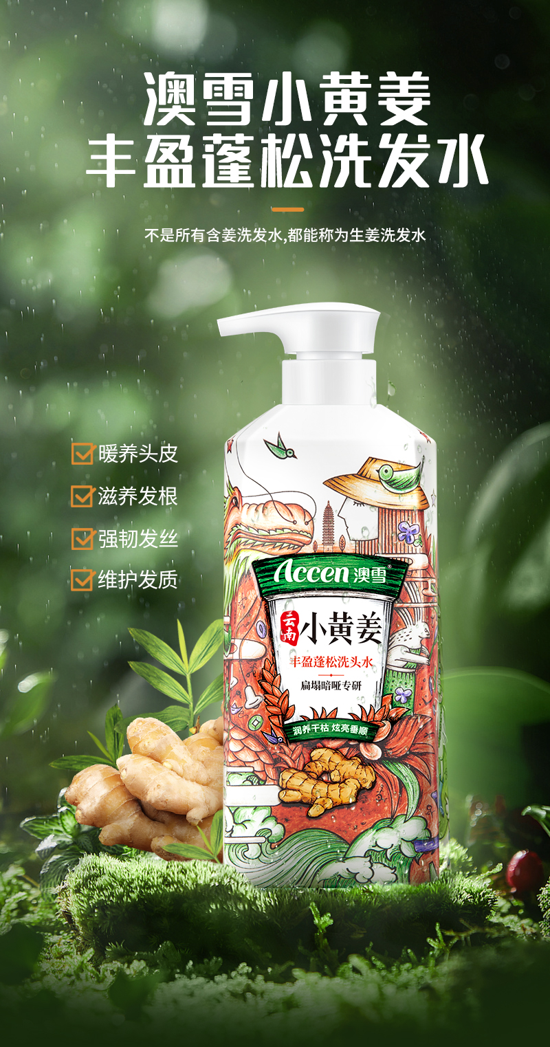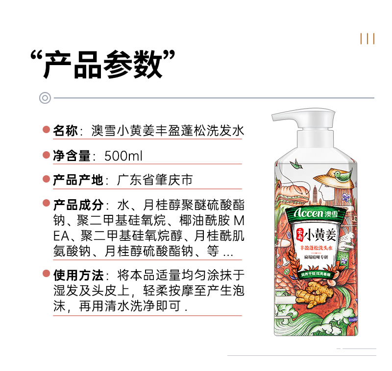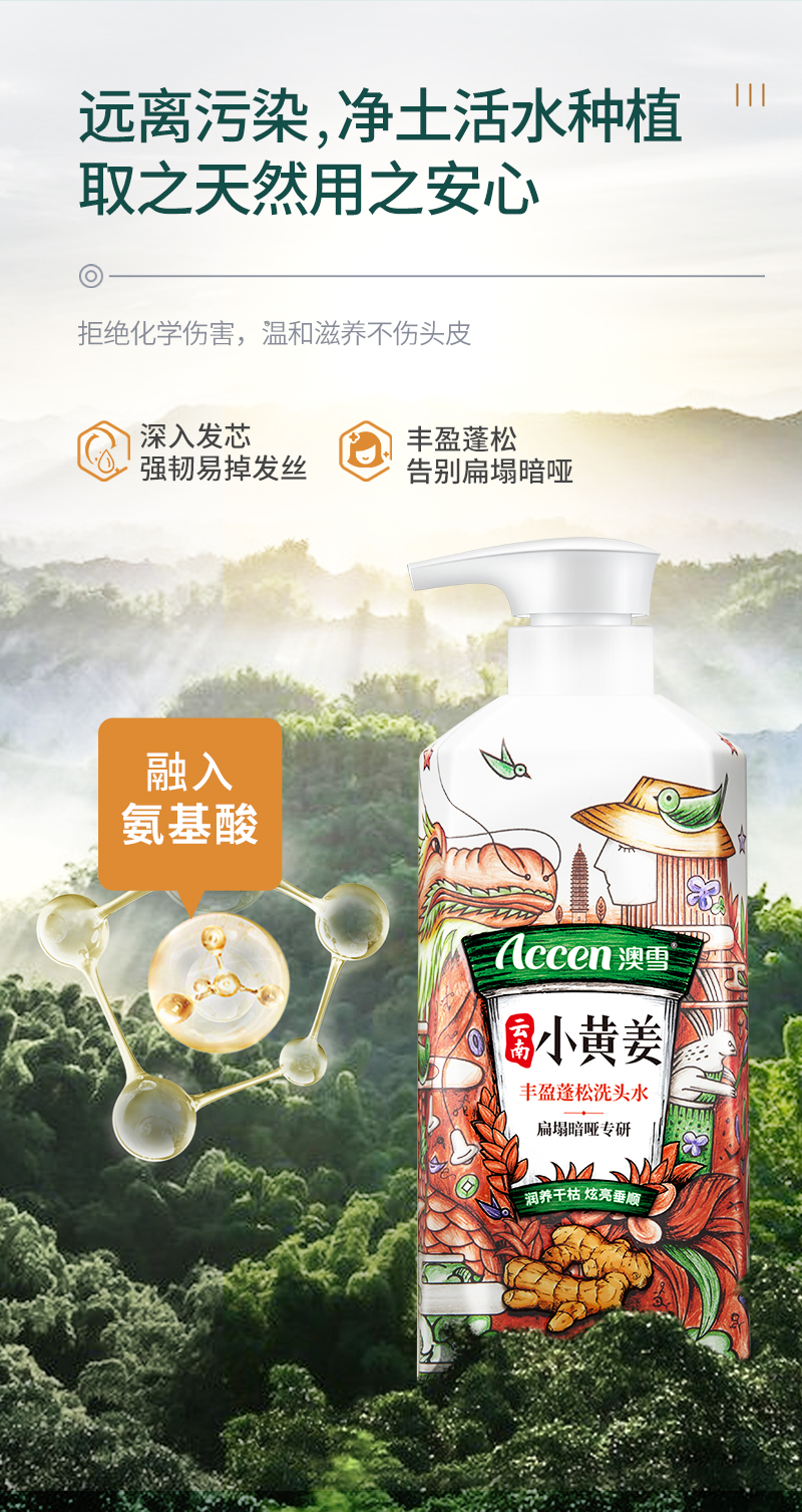 澳雪(accen)云南小黄姜丰盈蓬松洗发水500ml (单位:瓶) 丰盈蓬松