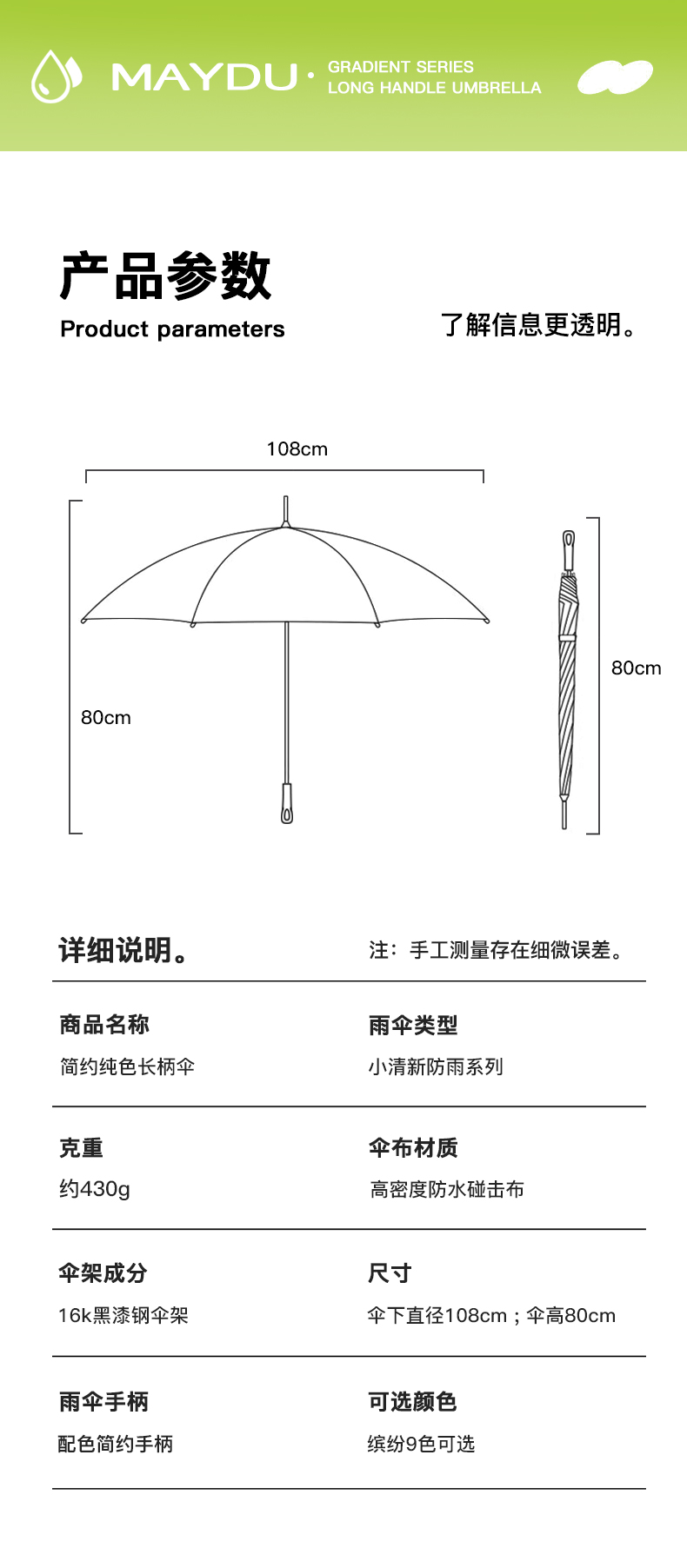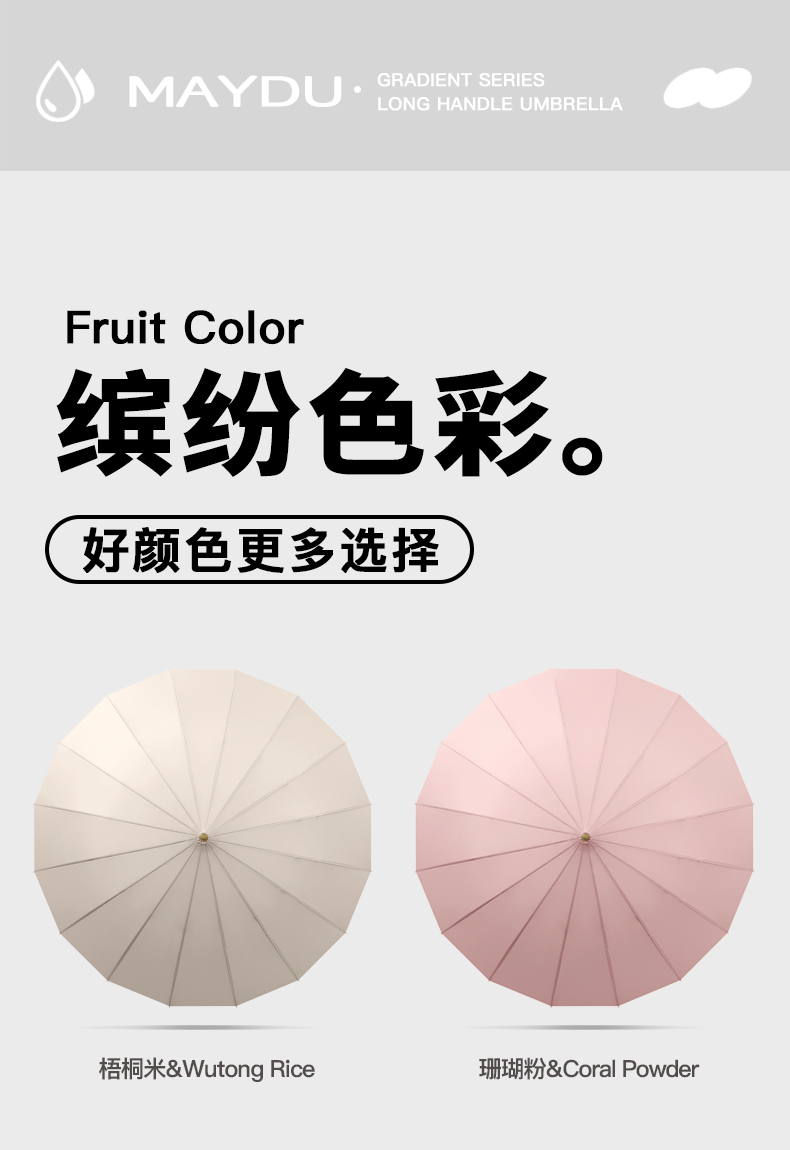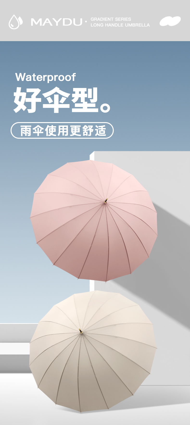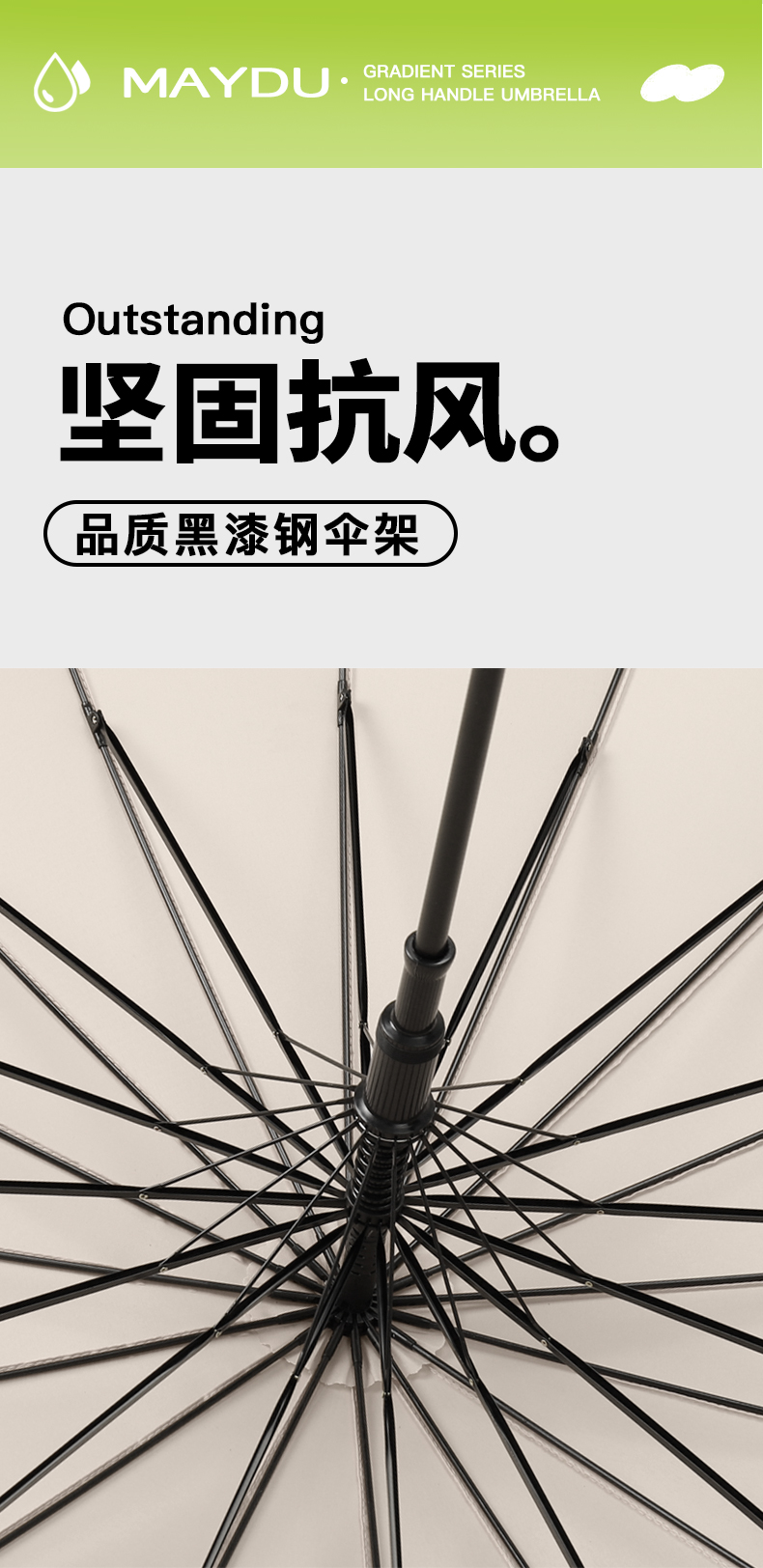美度16骨长柄伞加固加大防水抗风日系清新雨伞M1613(单位:把) 雾霾蓝