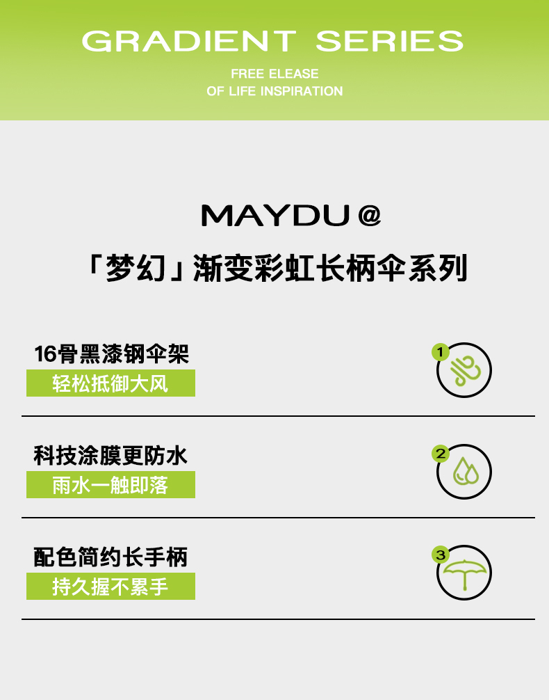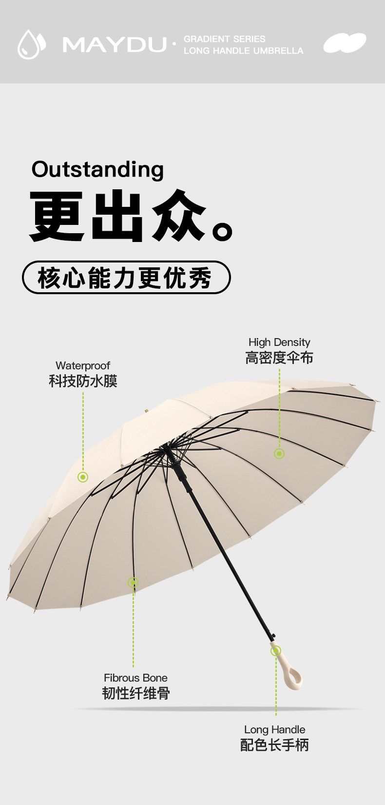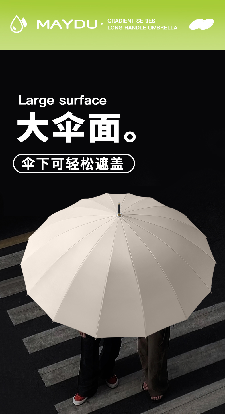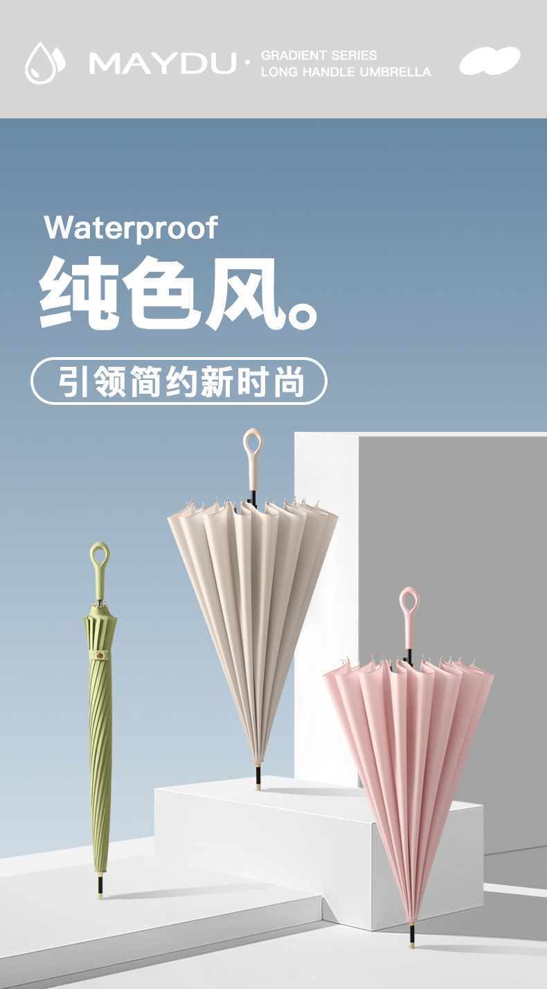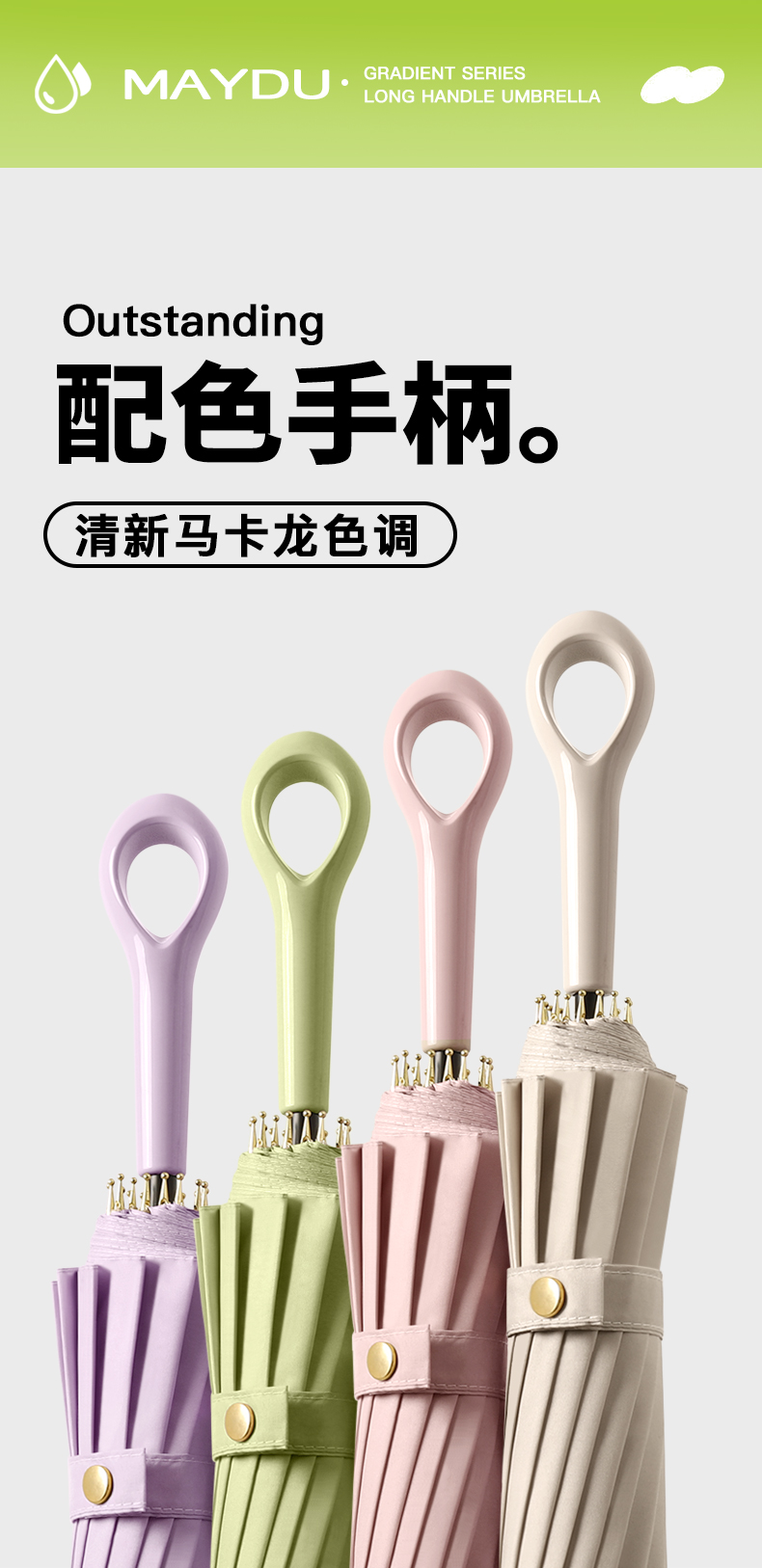 美度16骨长柄伞加固加大防水抗风日系清新雨伞M1613(单位:把) 雾霾蓝