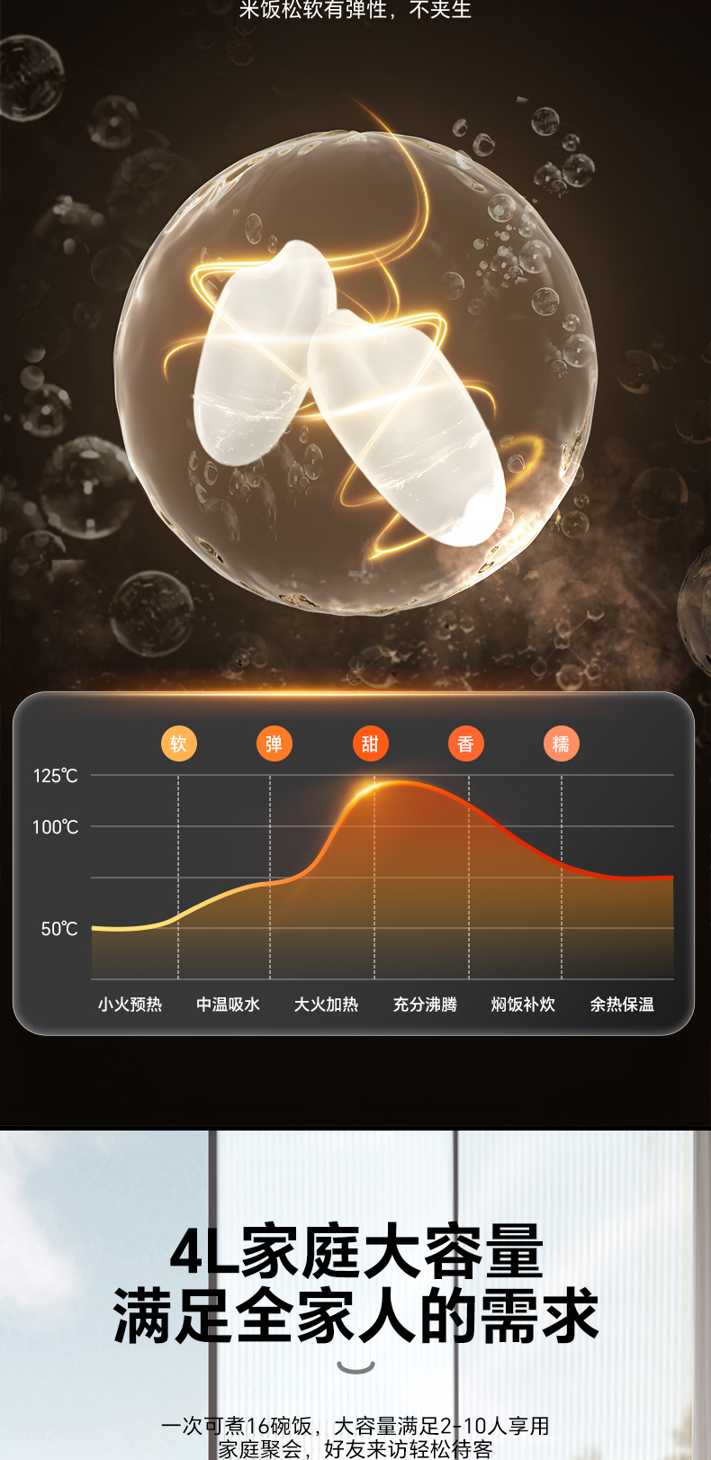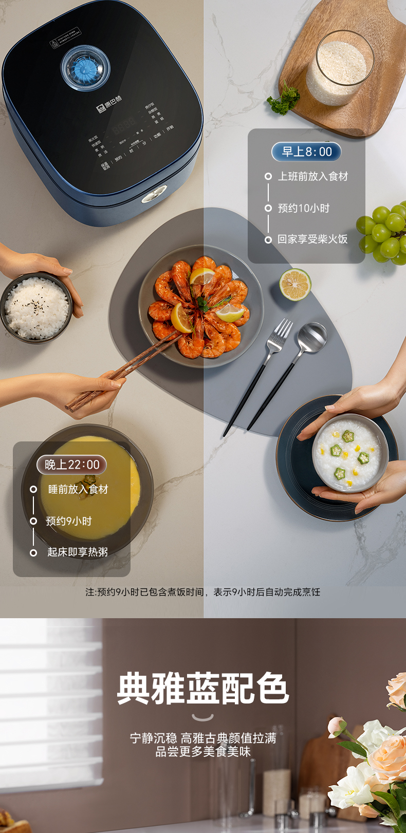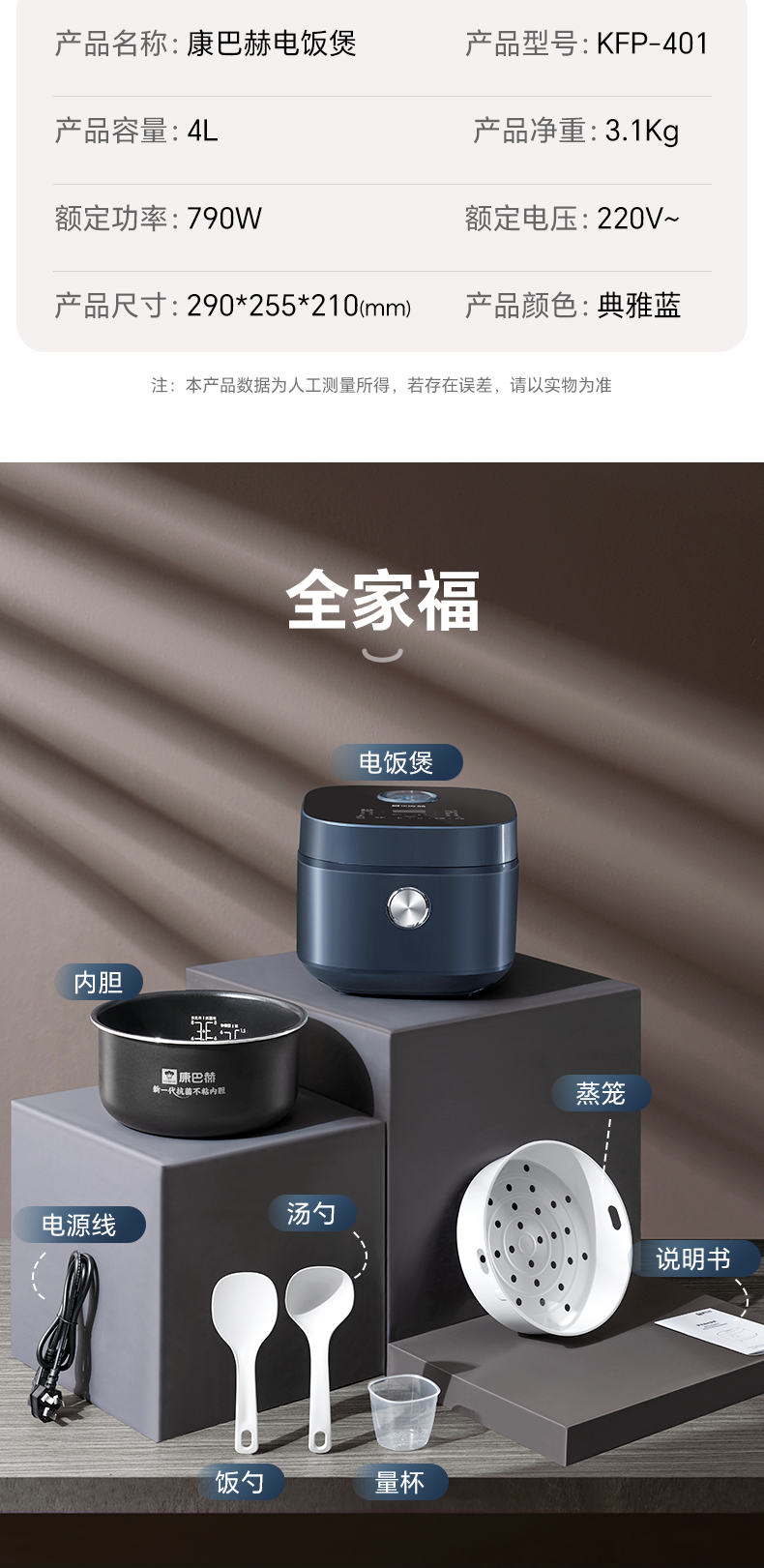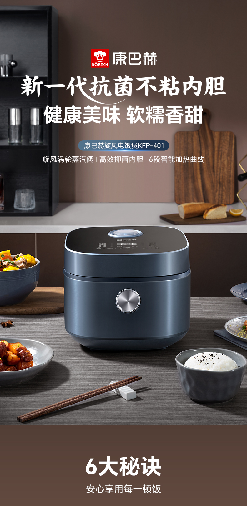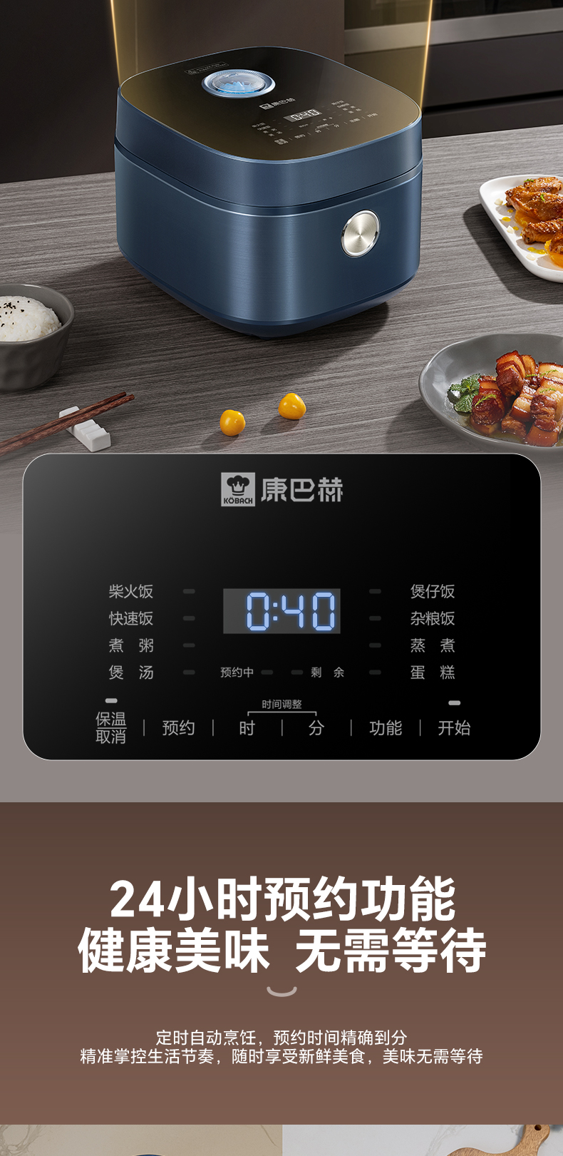 康巴赫 家用 4L多功能智能预约快煮抗菌饭锅 KFP-401(台) 典雅蓝