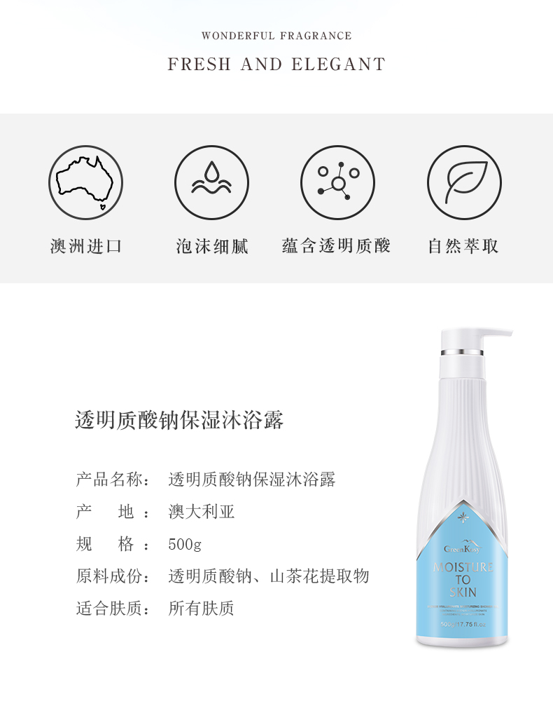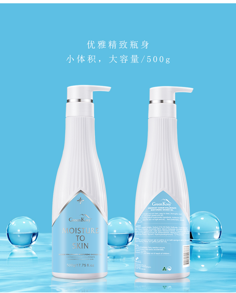 绿色溪谷透明质酸钠保湿沐浴露500g/瓶 2022-GKS4 水蓝色