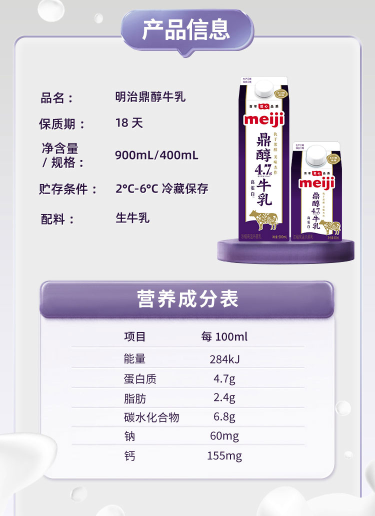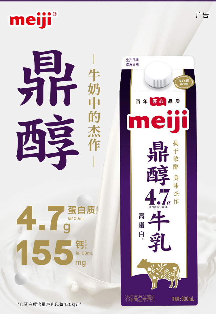 明治【国内奶源】鼎醇牛奶 每100ml含4.7g蛋白质(单位:盒) 950ml *3盒