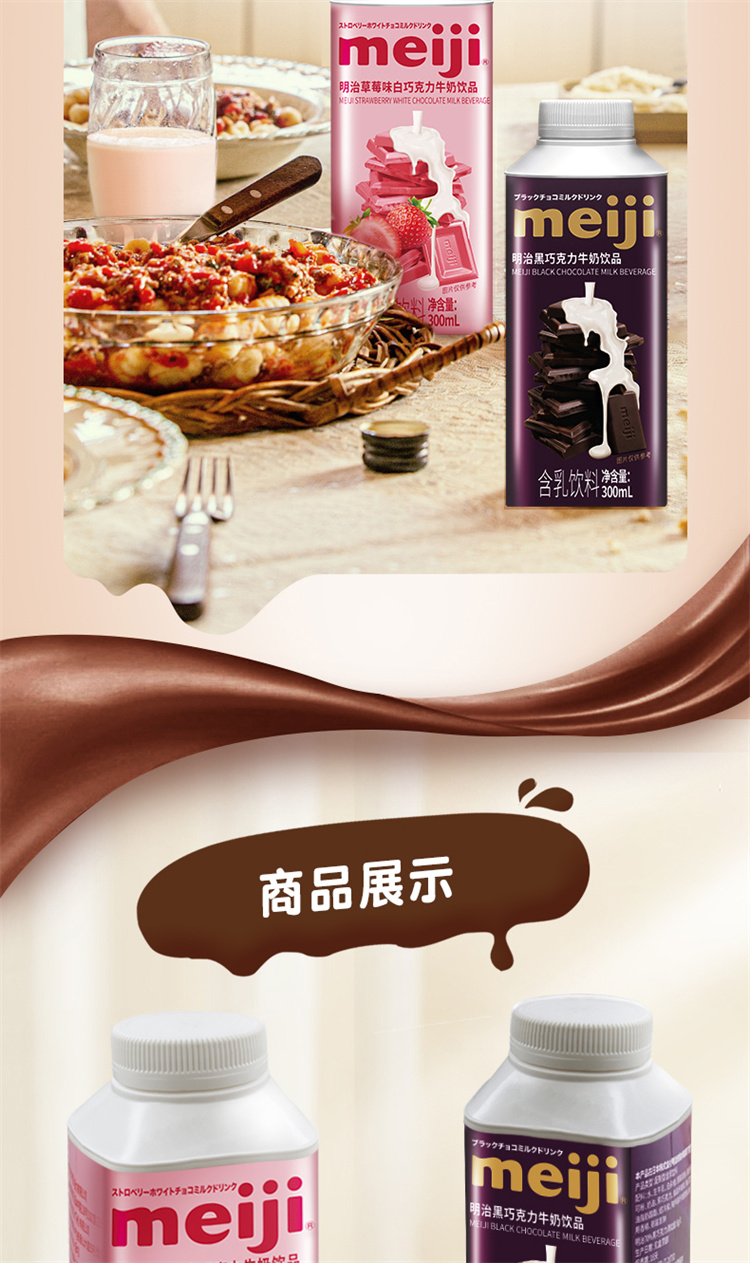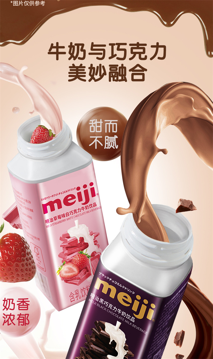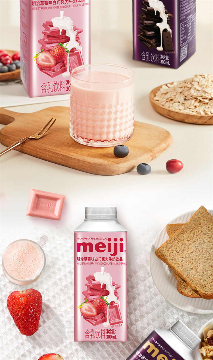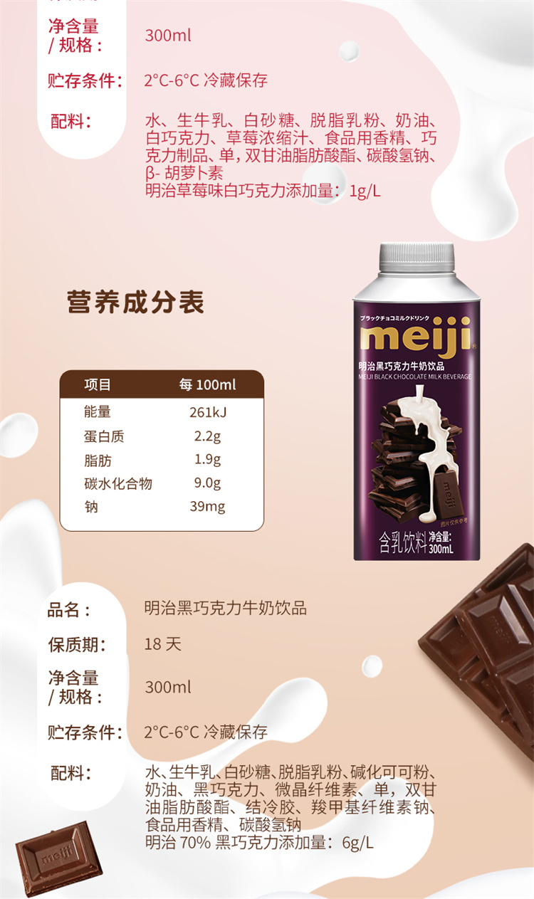 明治黑白巧克力牛奶饮品 300ml 低温牛奶(单位:盒) 黑巧+草莓白巧各4瓶