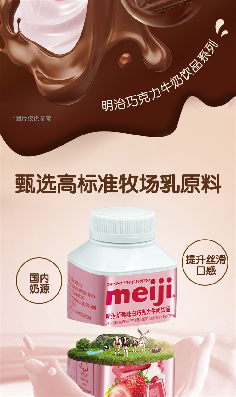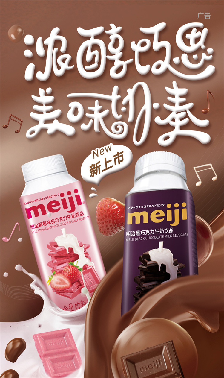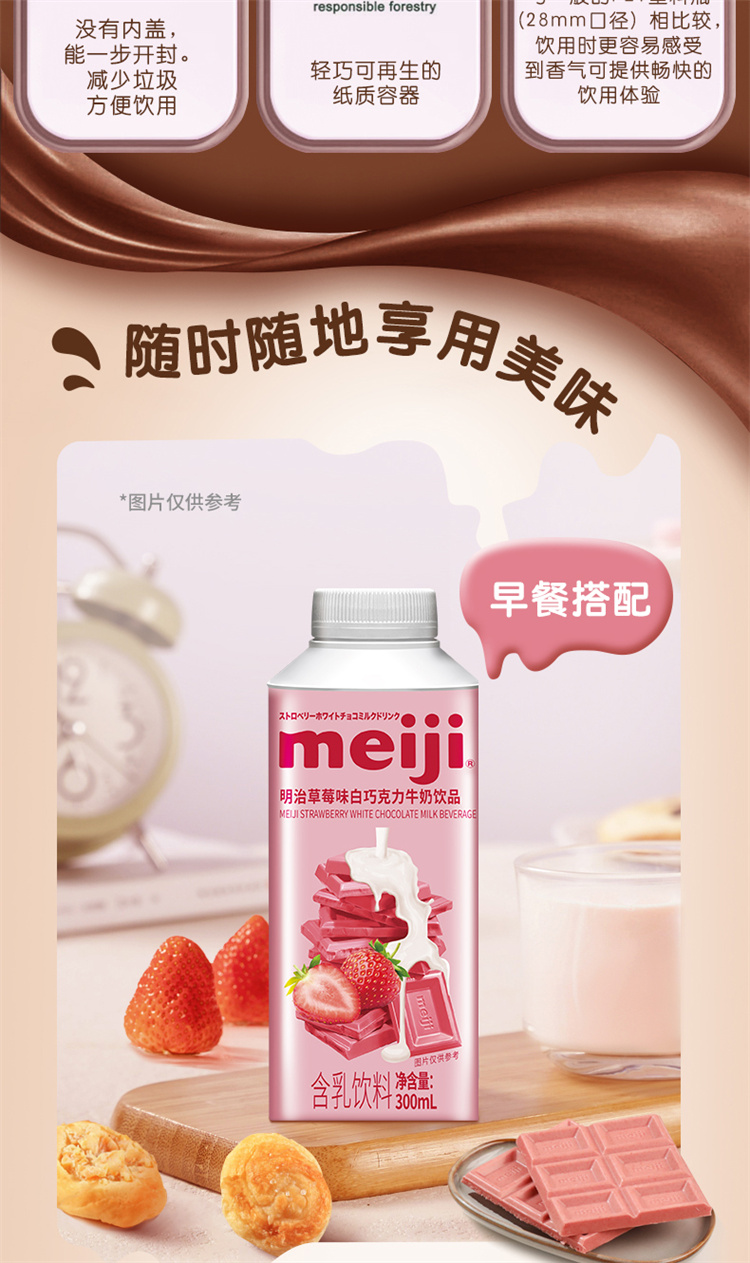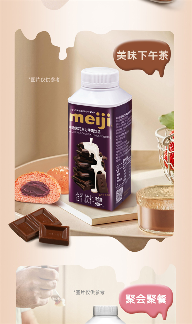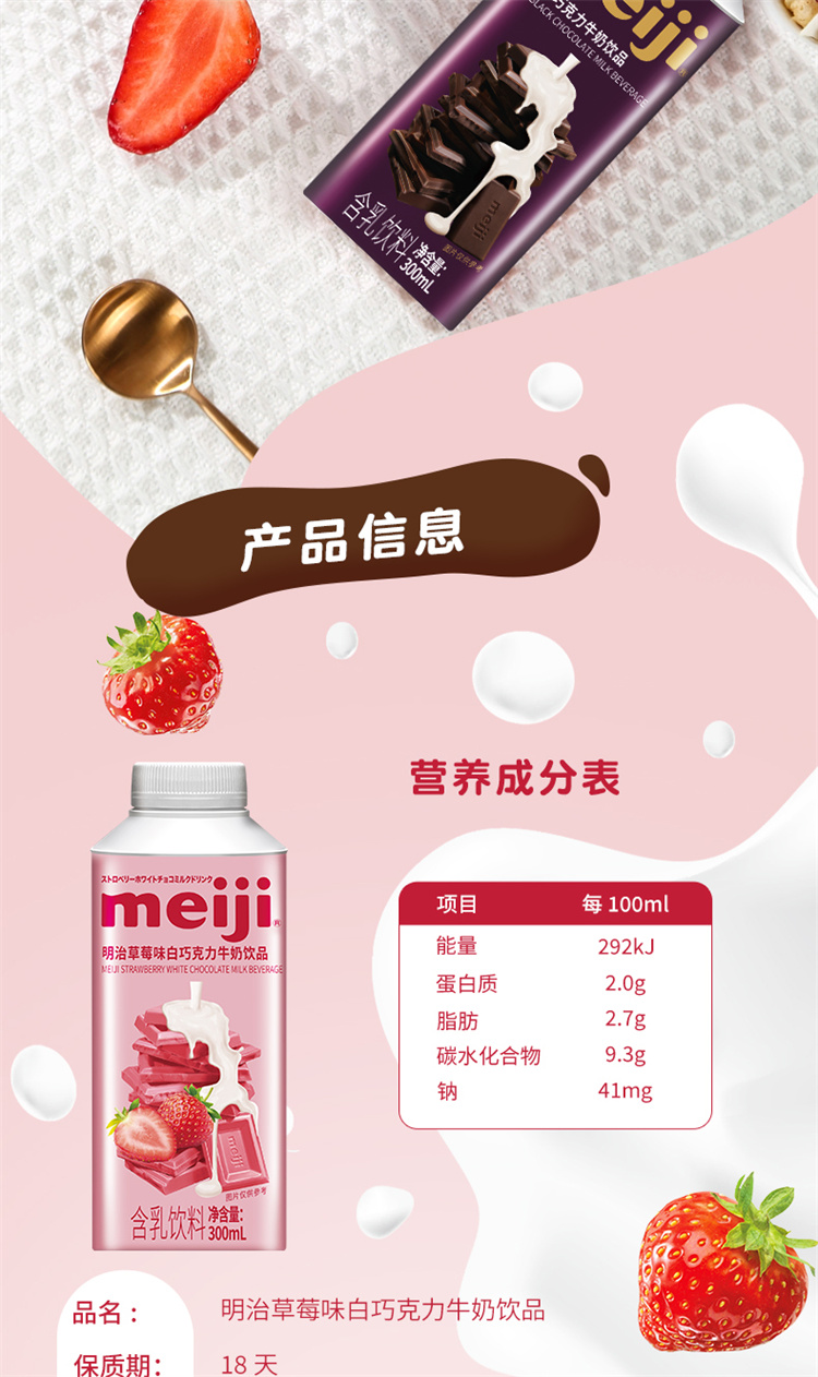 明治黑白巧克力牛奶饮品 300ml 低温牛奶(单位:盒) 黑巧+草莓白巧各4瓶
