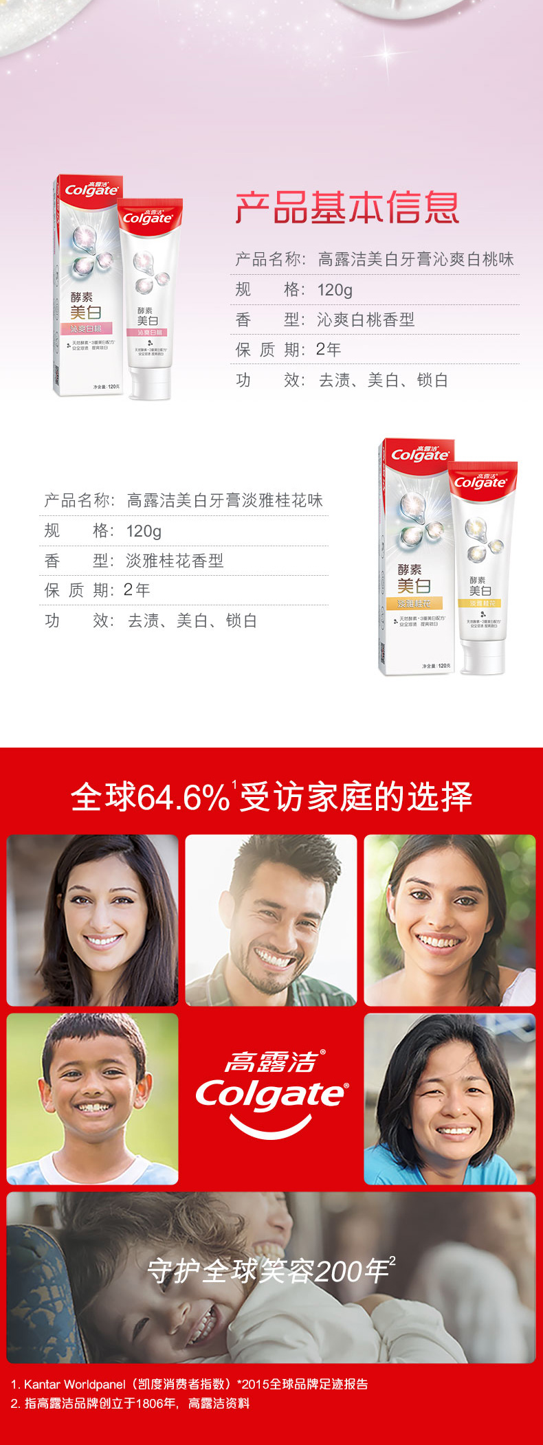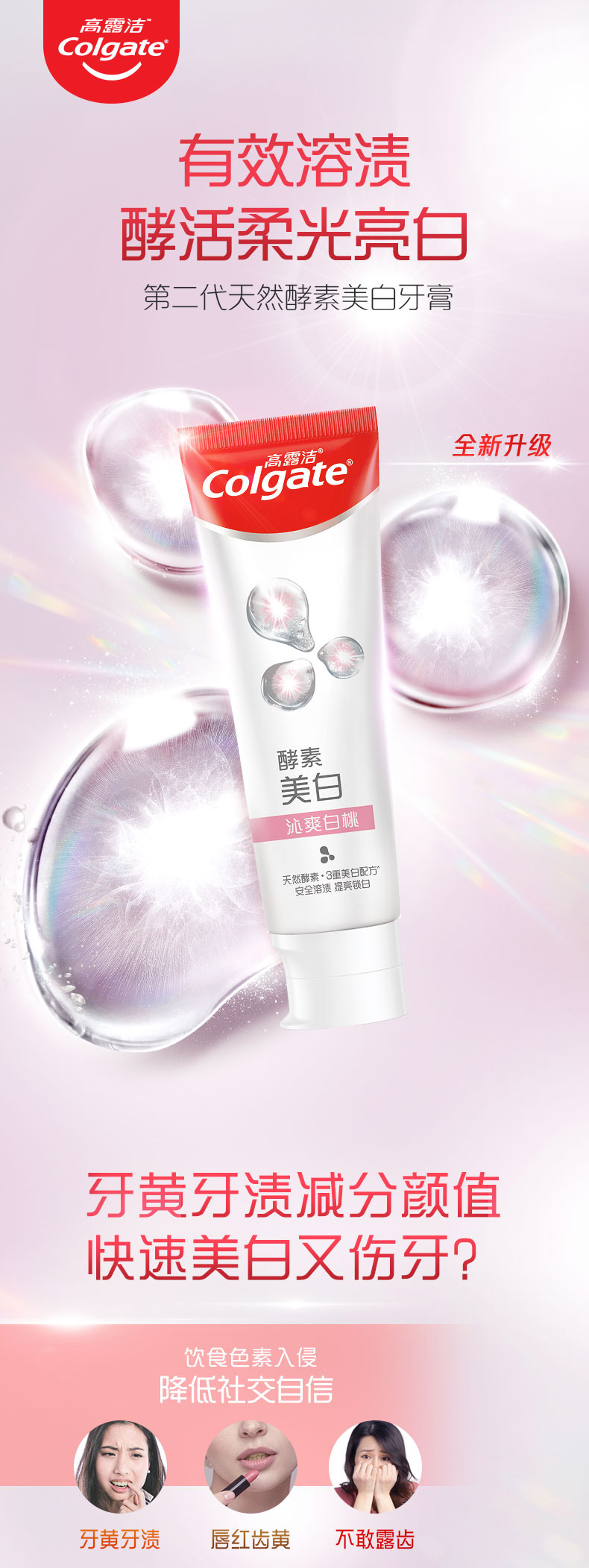 高露洁美白牙膏沁爽白桃味120g 支 白色