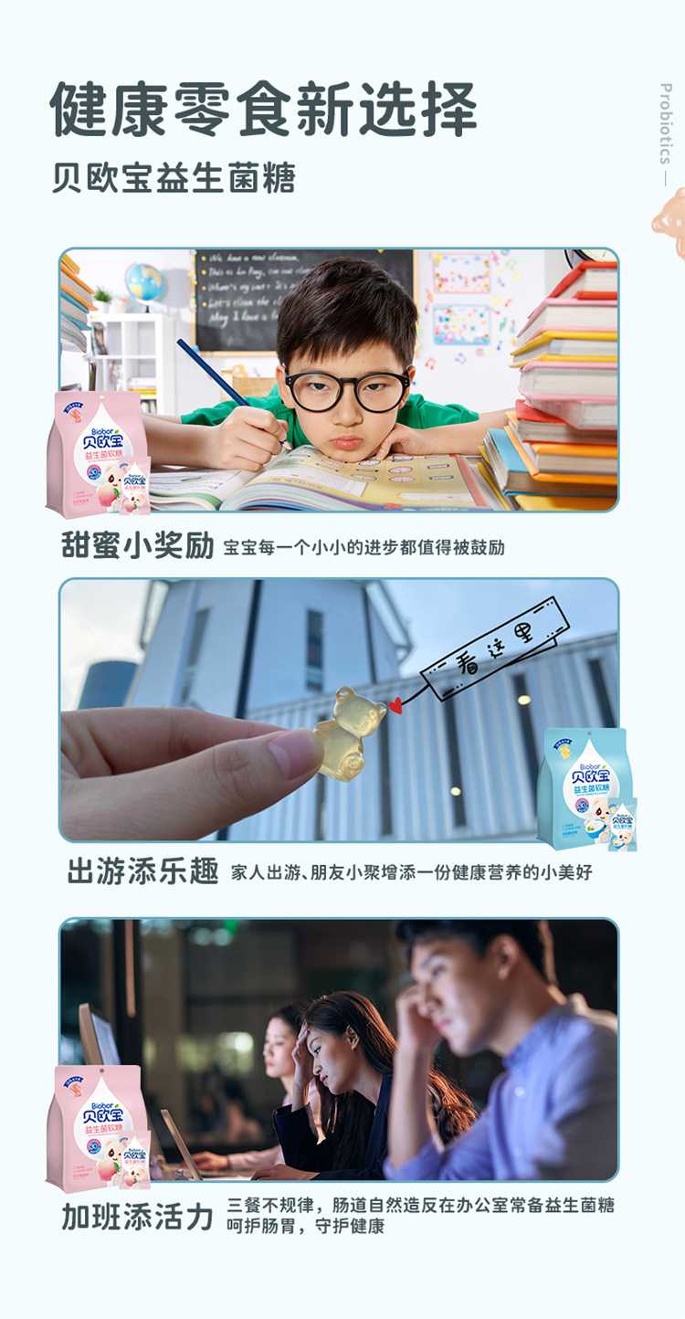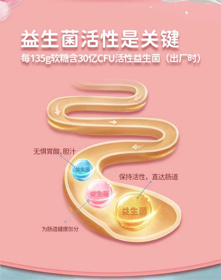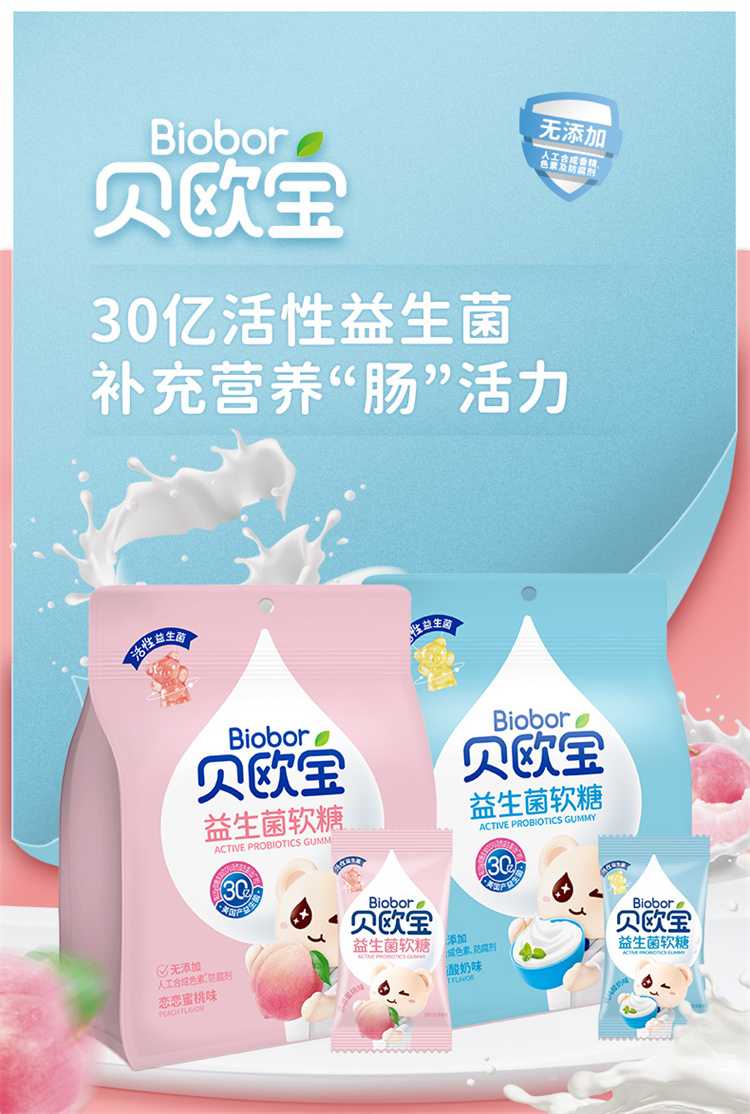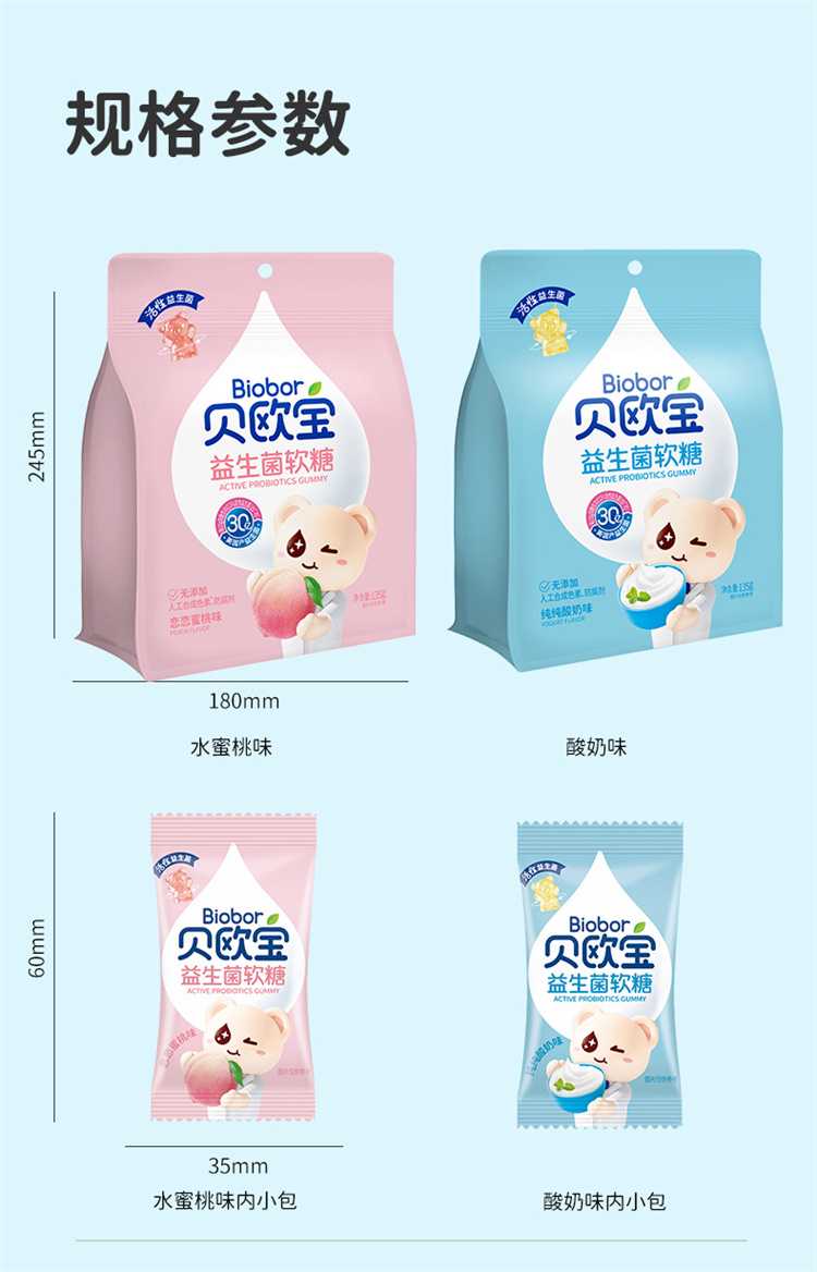 贝欧宝活性益生菌软糖儿童营养糖果零食2袋135g(单位:袋) 水蜜桃味