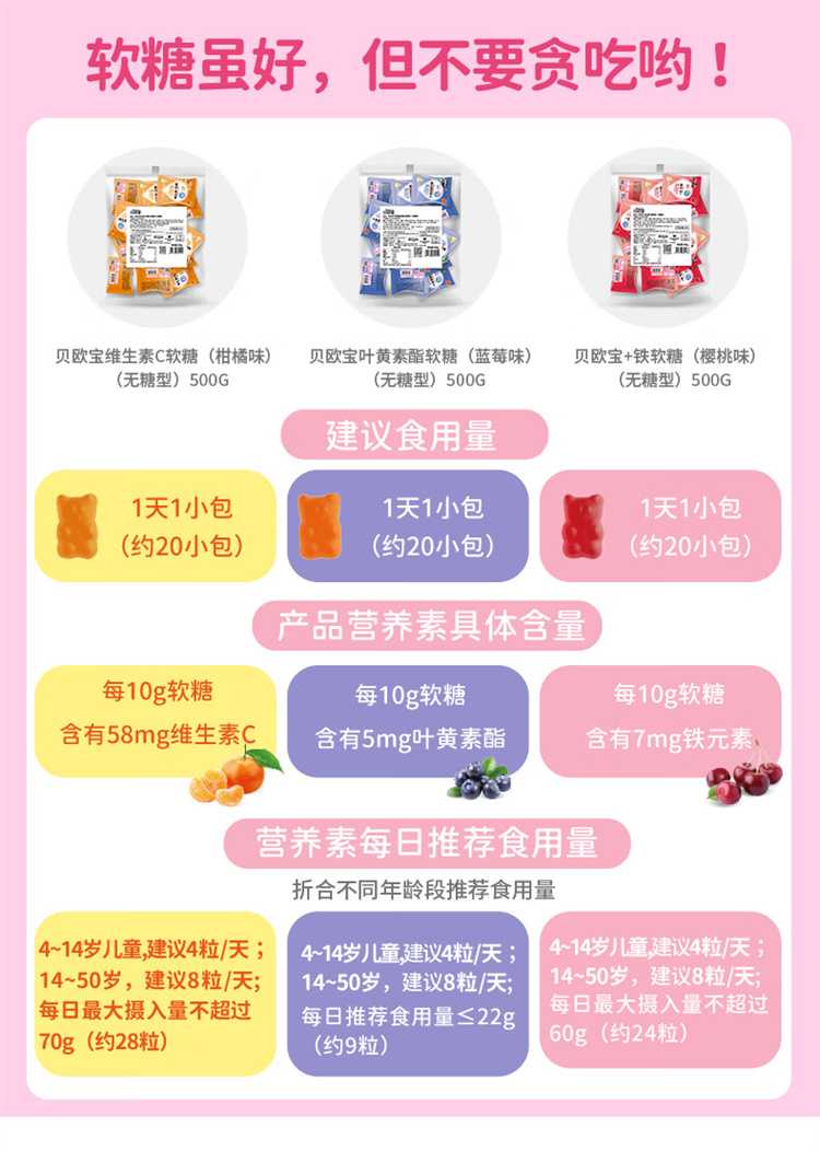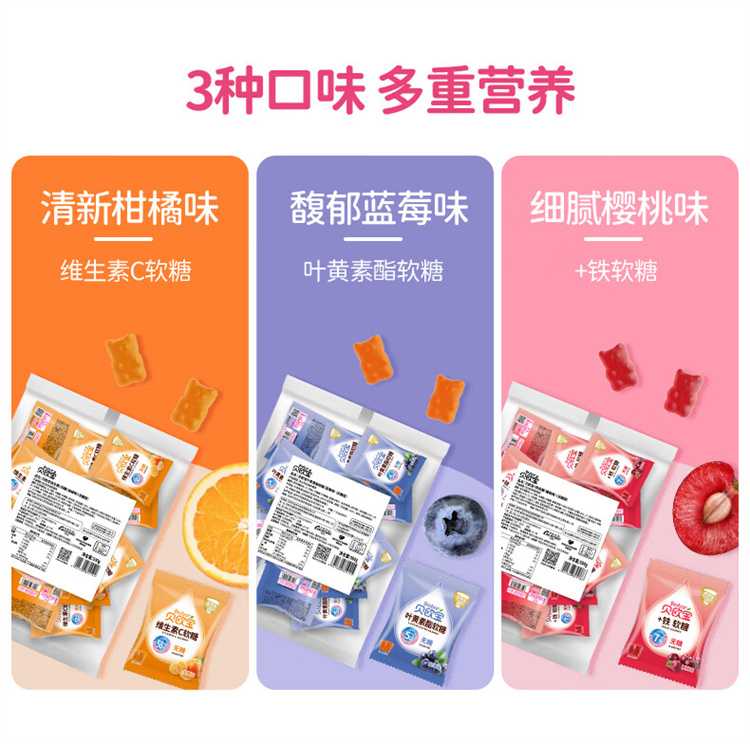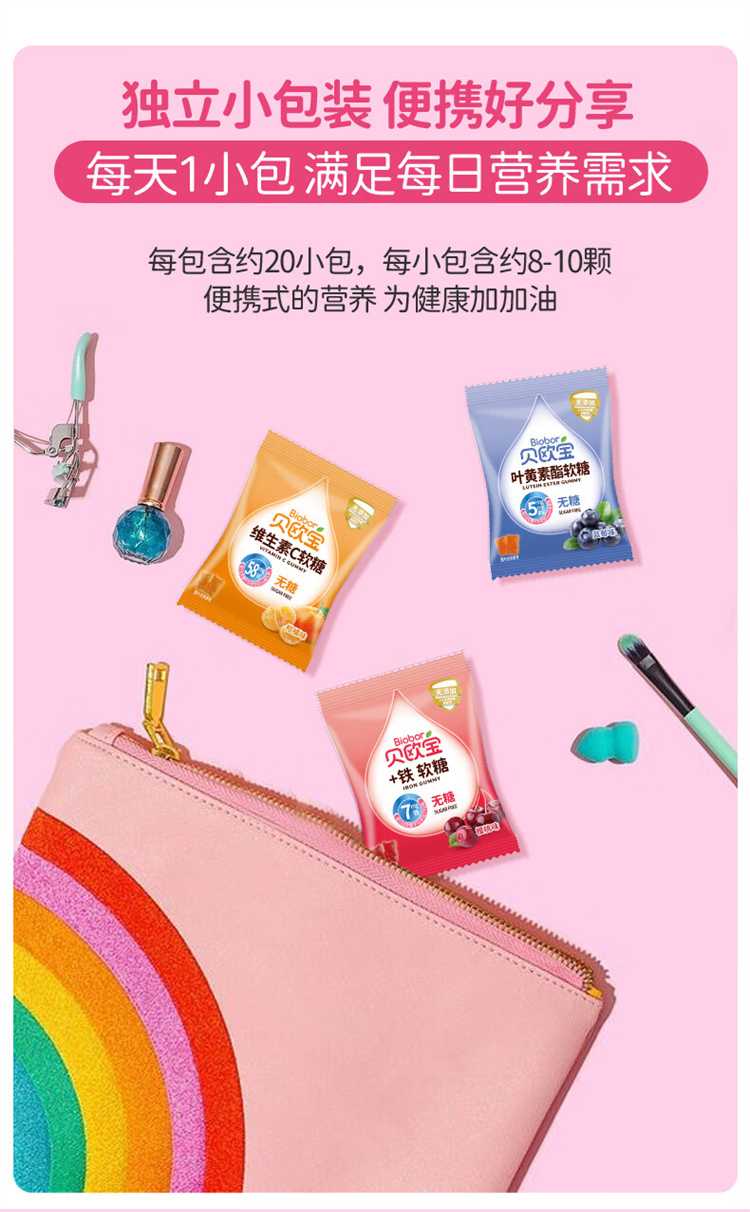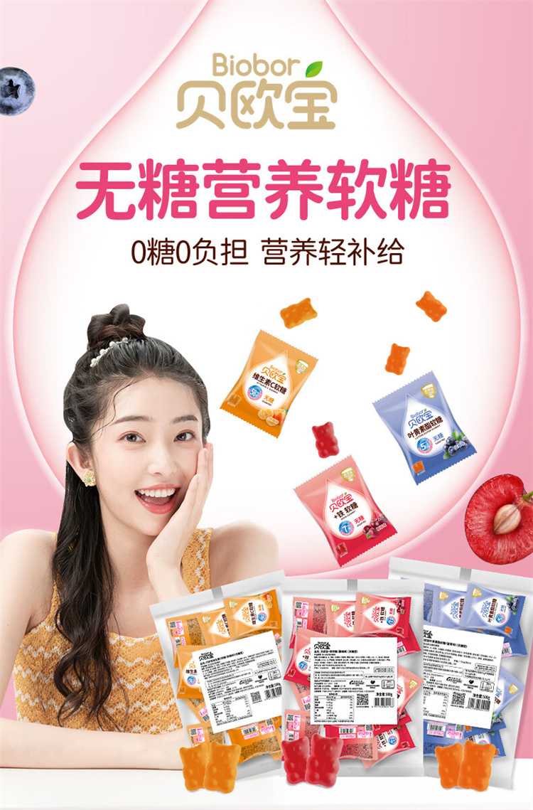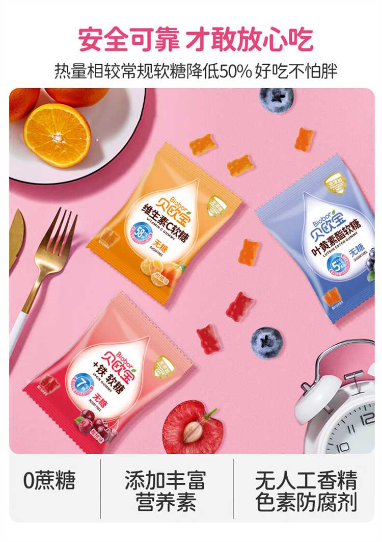 贝欧宝无糖软糖果汁营养糖果零食橡皮糖新年糖手抓包500g(单位:袋) 叶黄素酯软糖蓝莓味