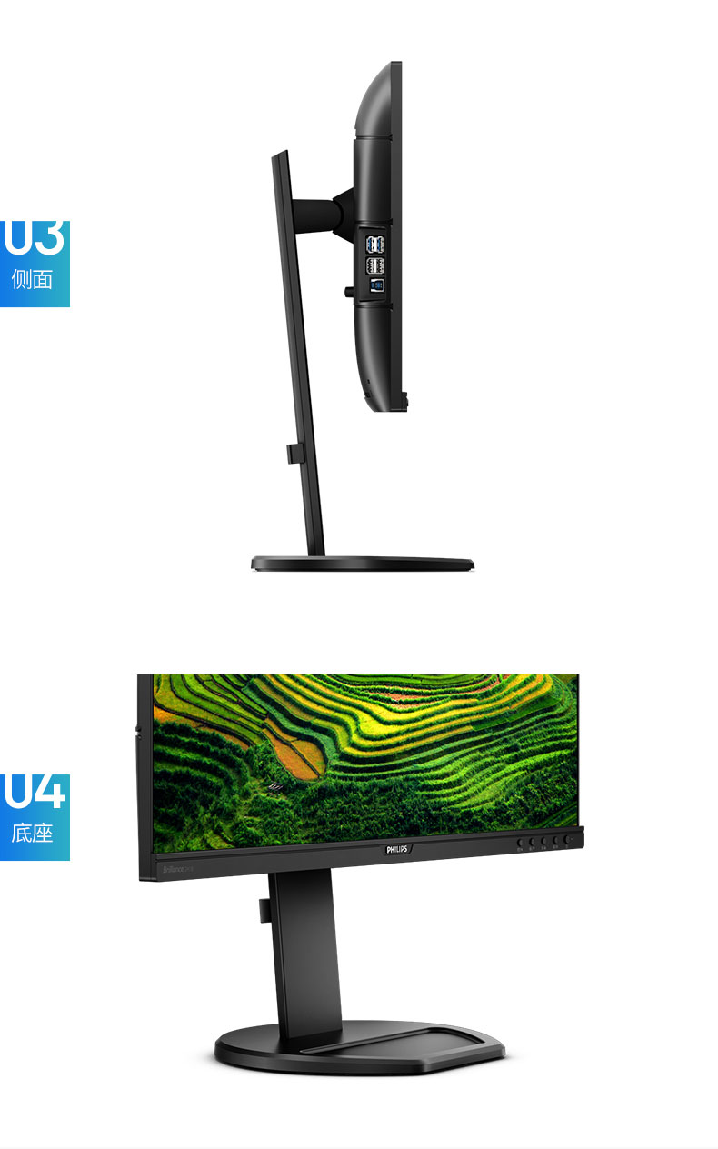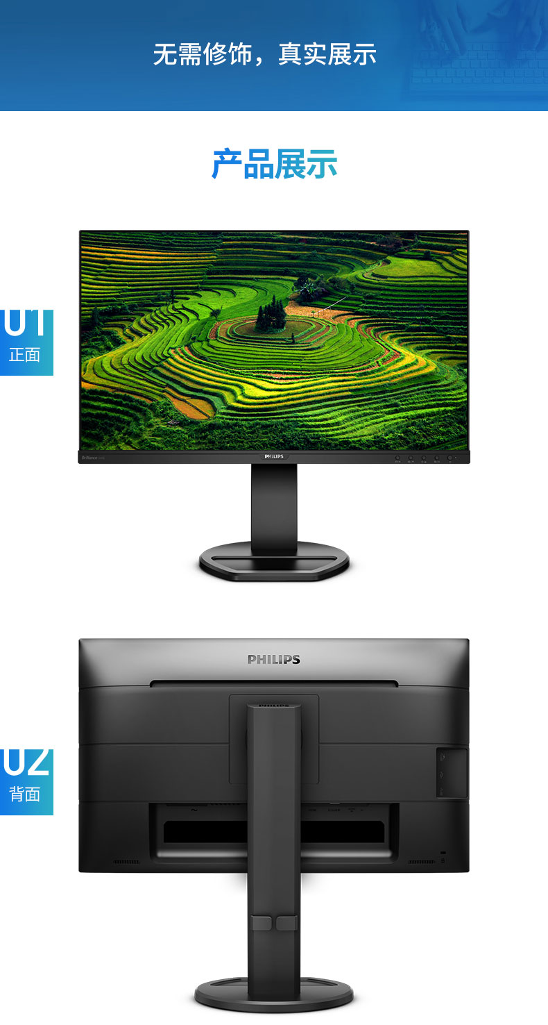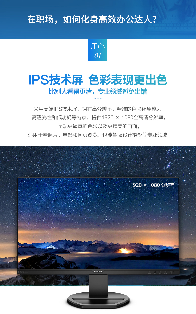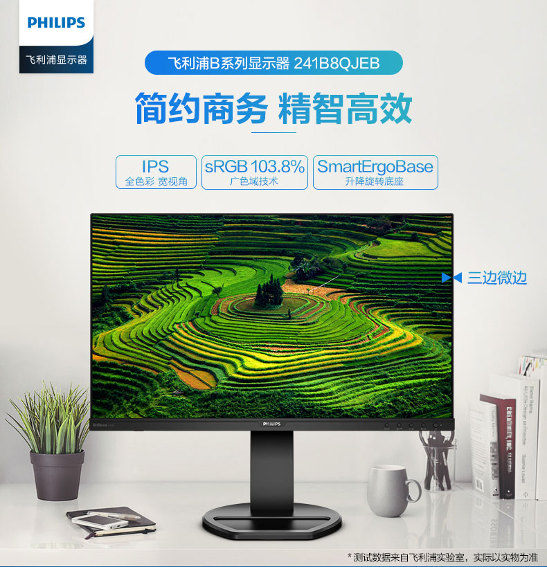飞利浦(PHILIPS)23.8英寸 办公显示器 IPS高清 103.8%sRGB内置音响低蓝光 台 黑色