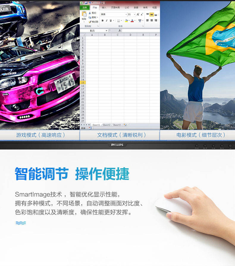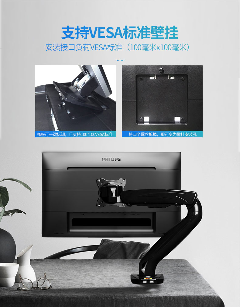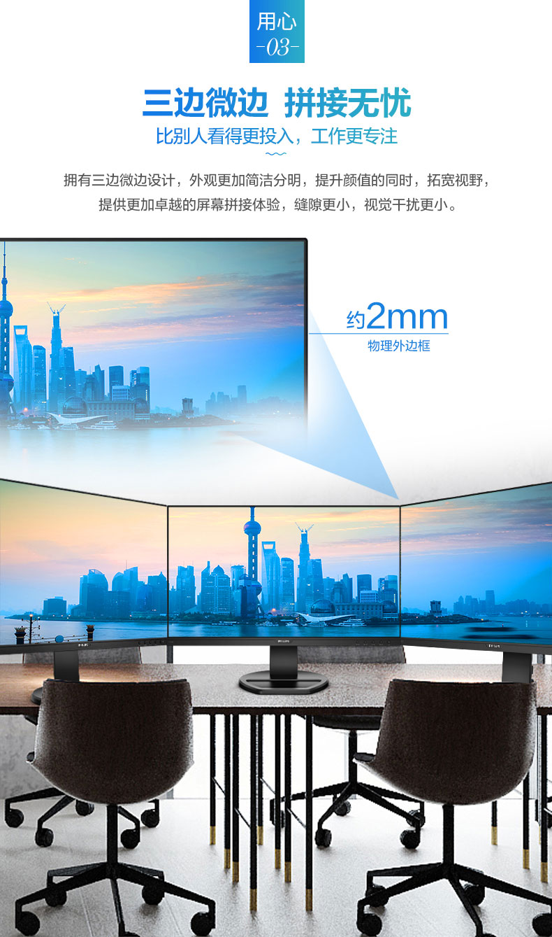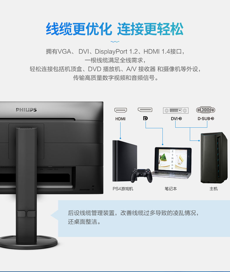 飞利浦(PHILIPS)23.8英寸 办公显示器 IPS高清 103.8%sRGB内置音响低蓝光 台 黑色