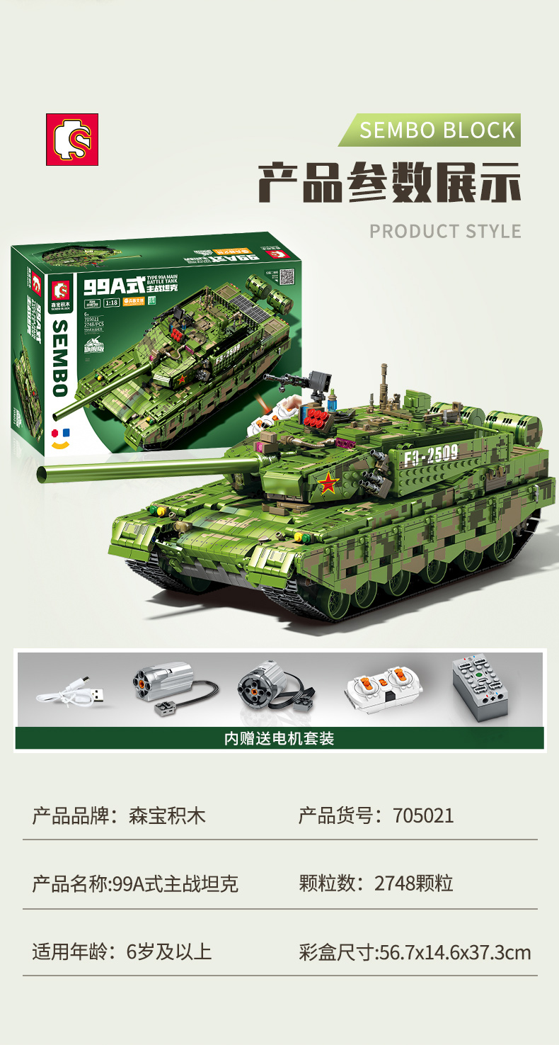 森宝积木中兵系列1:18全遥控99A 705021(单位:盒)