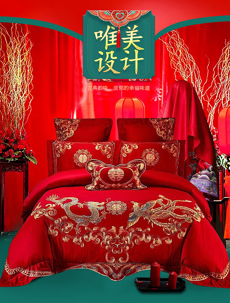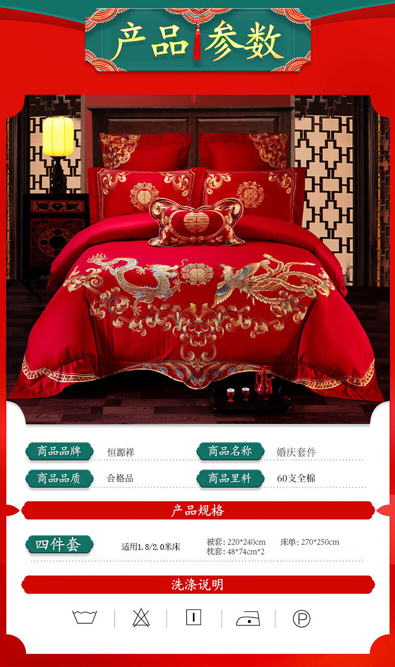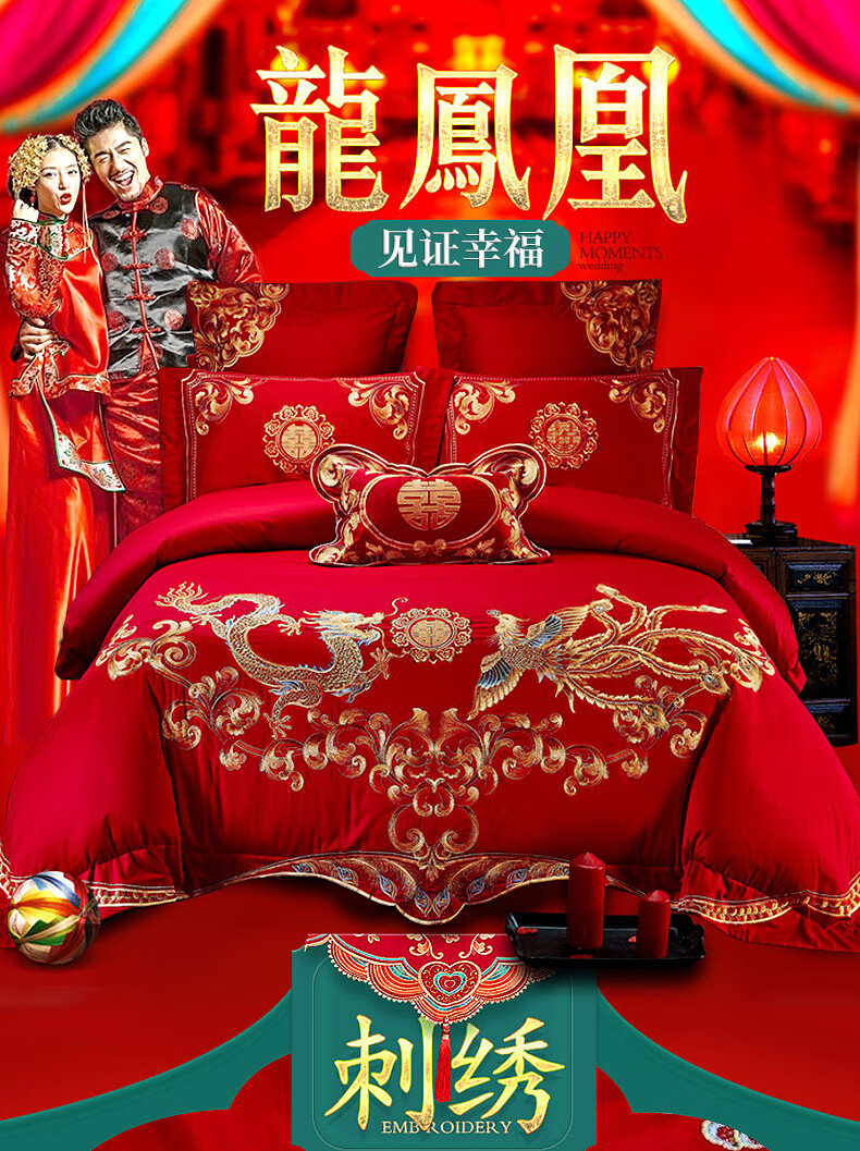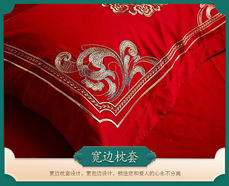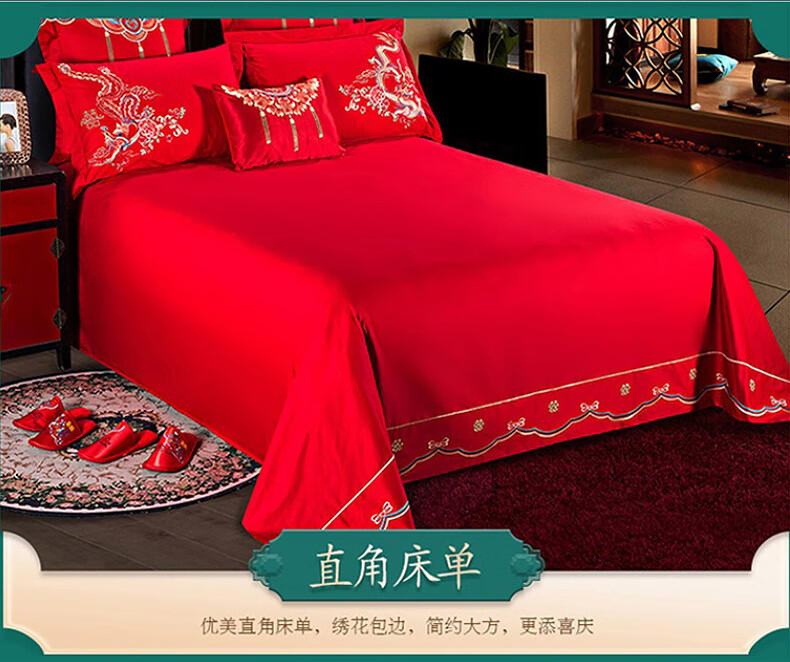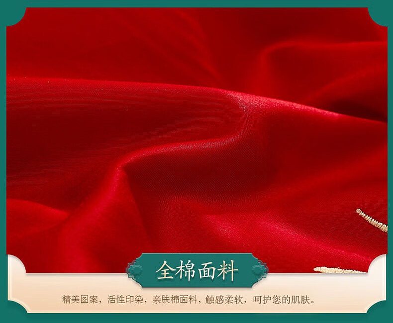 恒源祥婚庆家纺 刺绣全棉结婚四件套1.8/2米床上被套220*240cm红色 红色 220*240cm