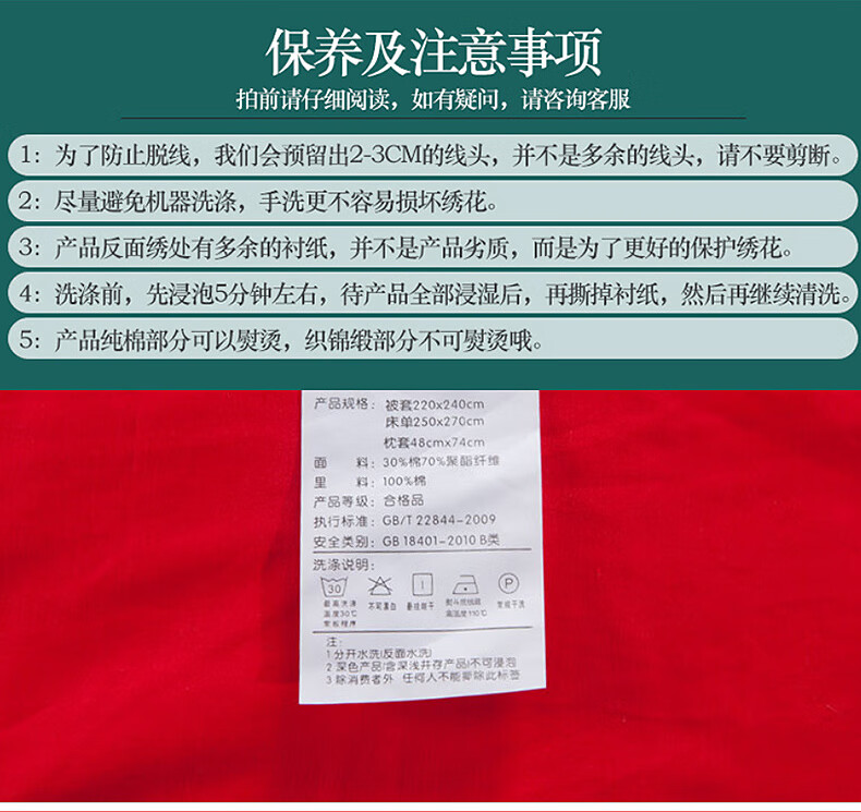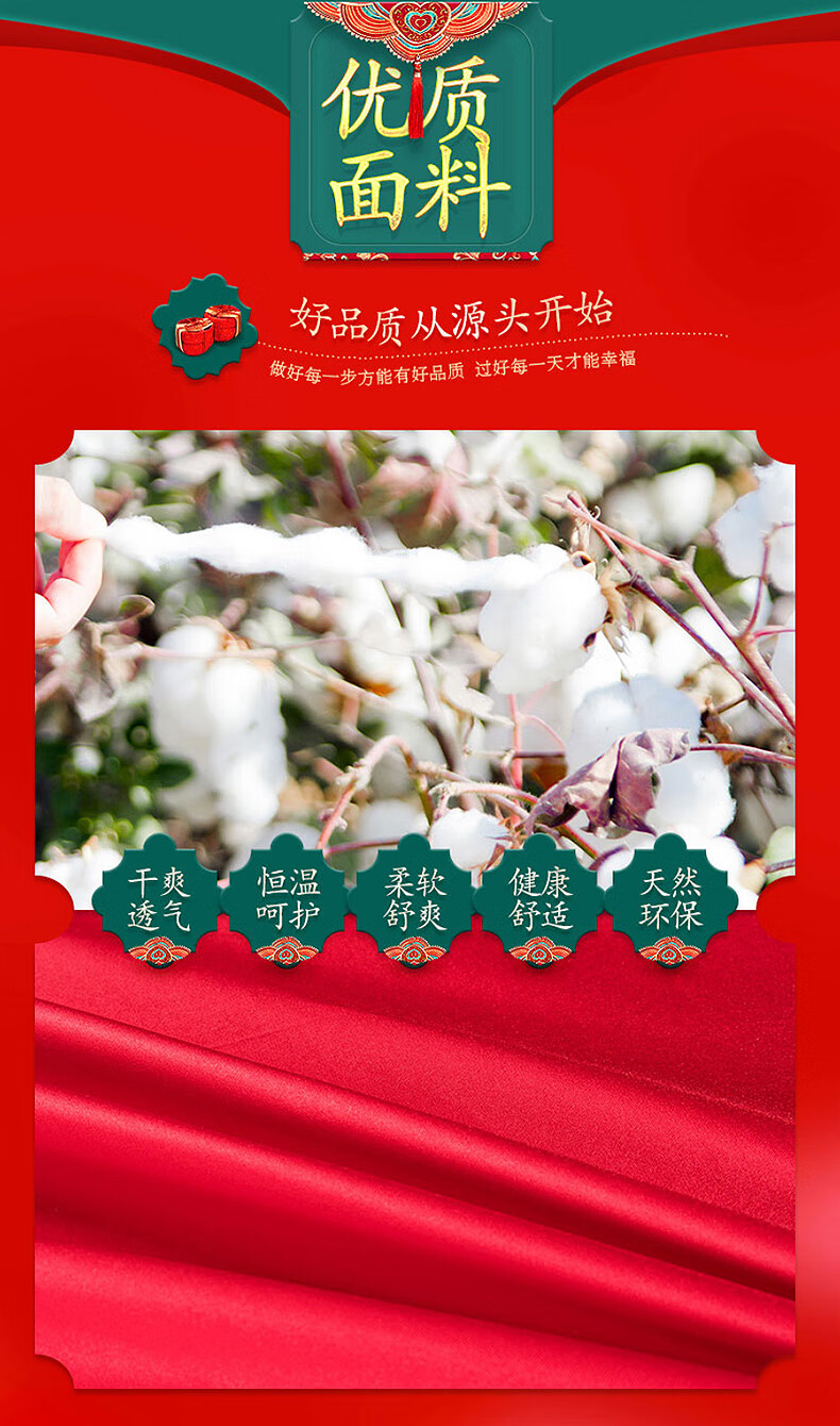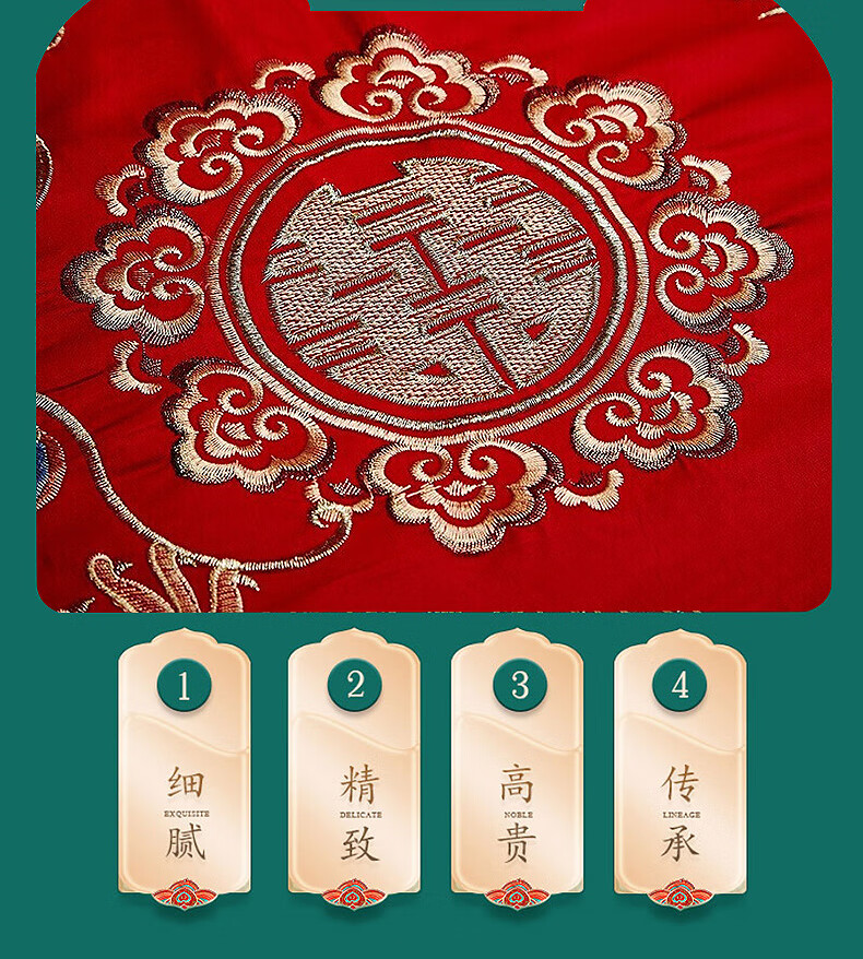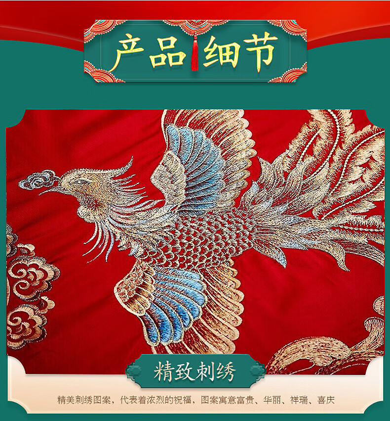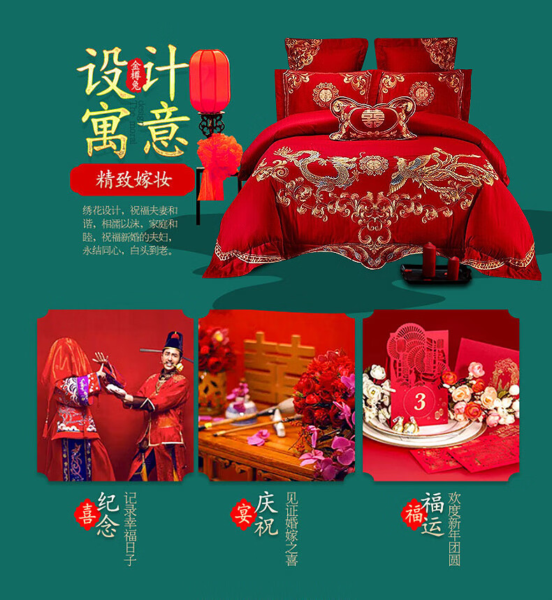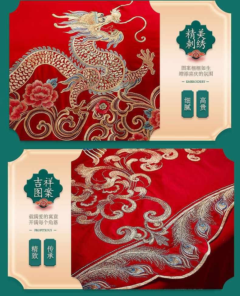 恒源祥婚庆家纺 刺绣全棉结婚四件套1.8/2米床上被套220*240cm红色 红色 220*240cm