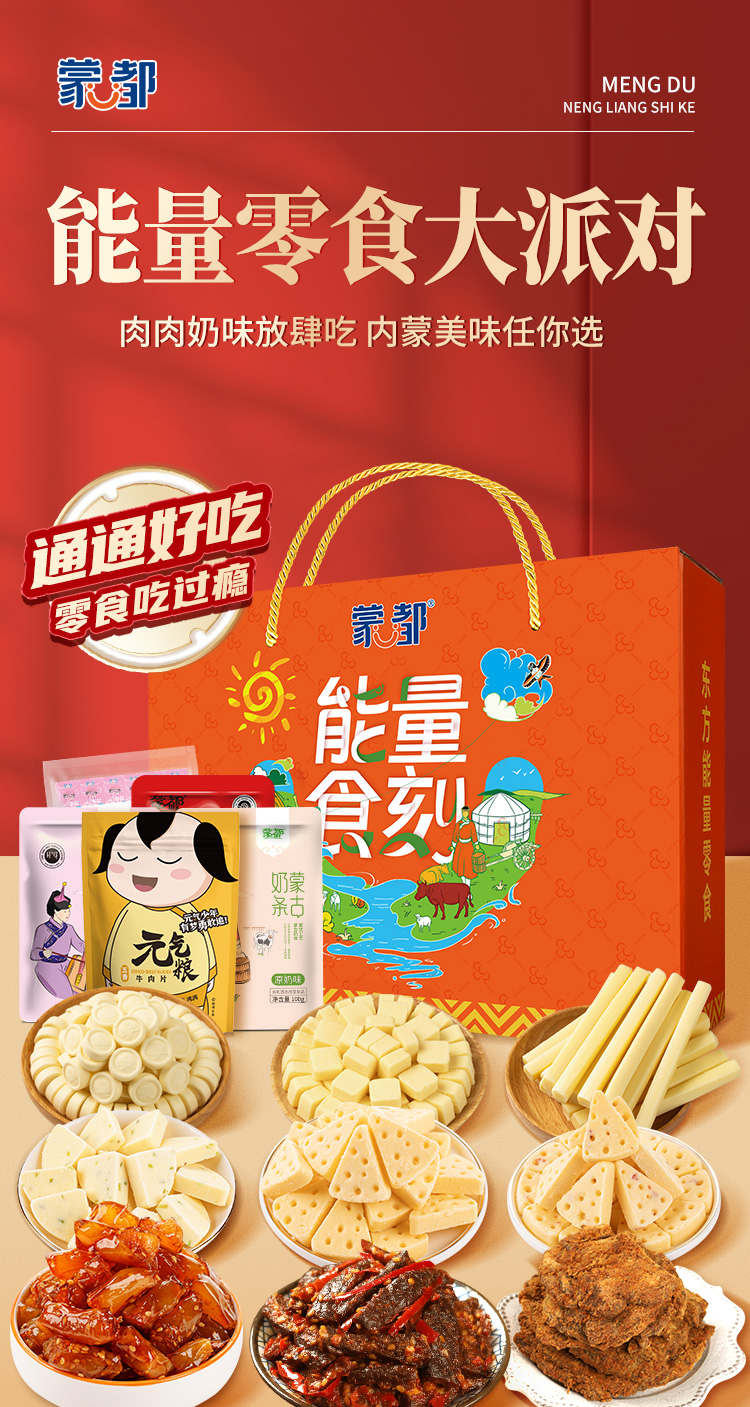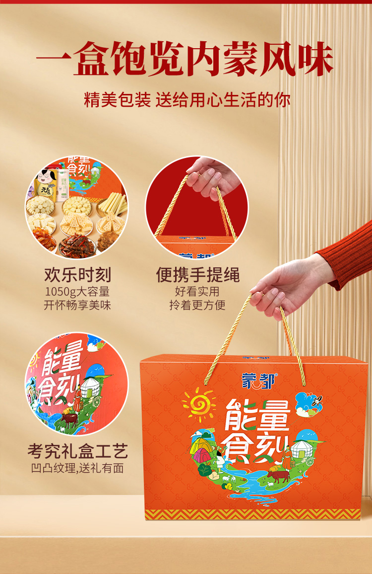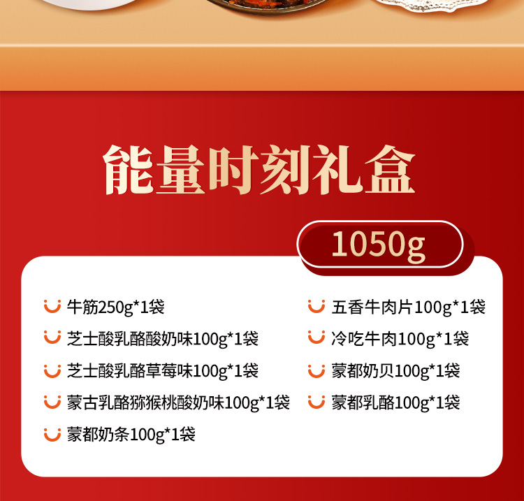 蒙都能量时刻内蒙古特产五香牛肉零食礼包1050g(单位:盒) 山茶花