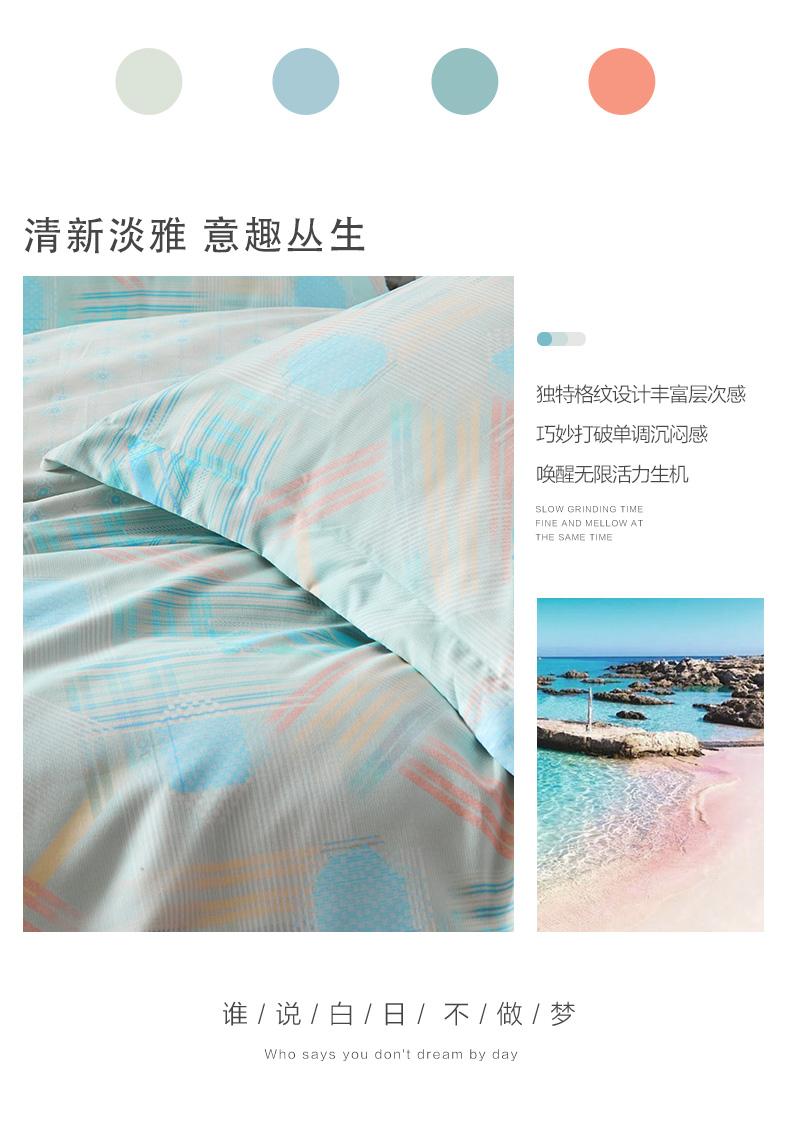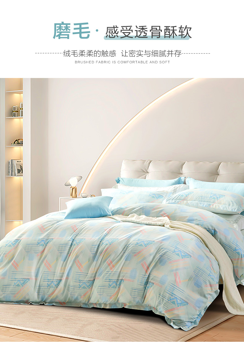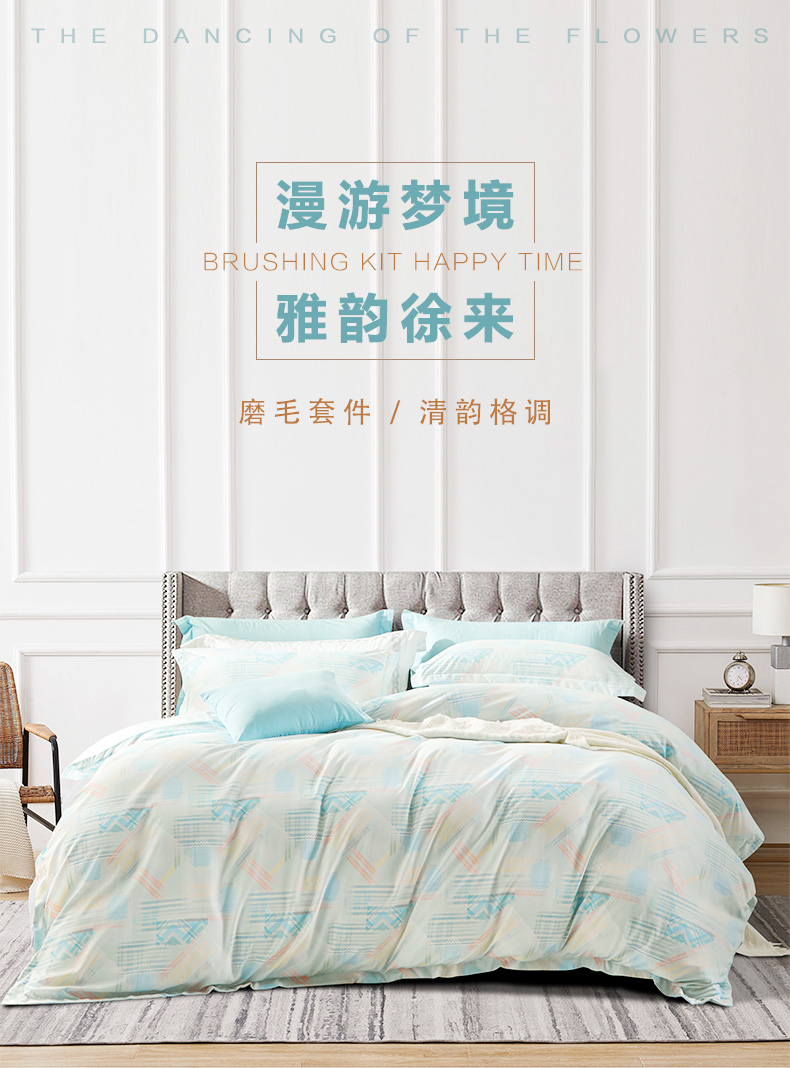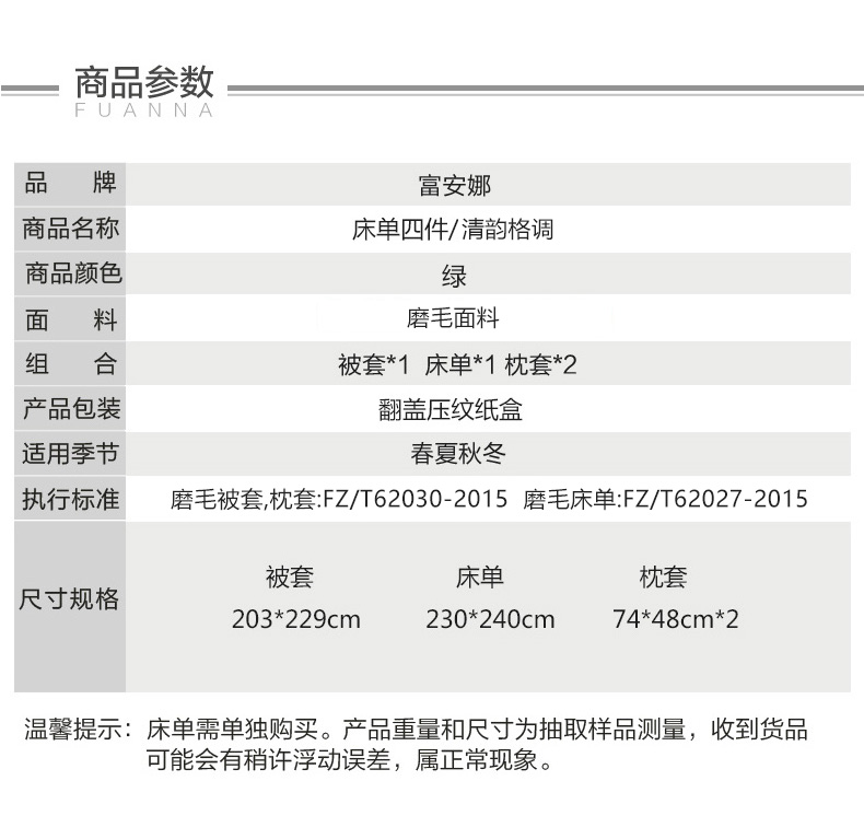 富安娜磨毛床单四件套/清韵格调/203*229cm(单位:套) 绿色