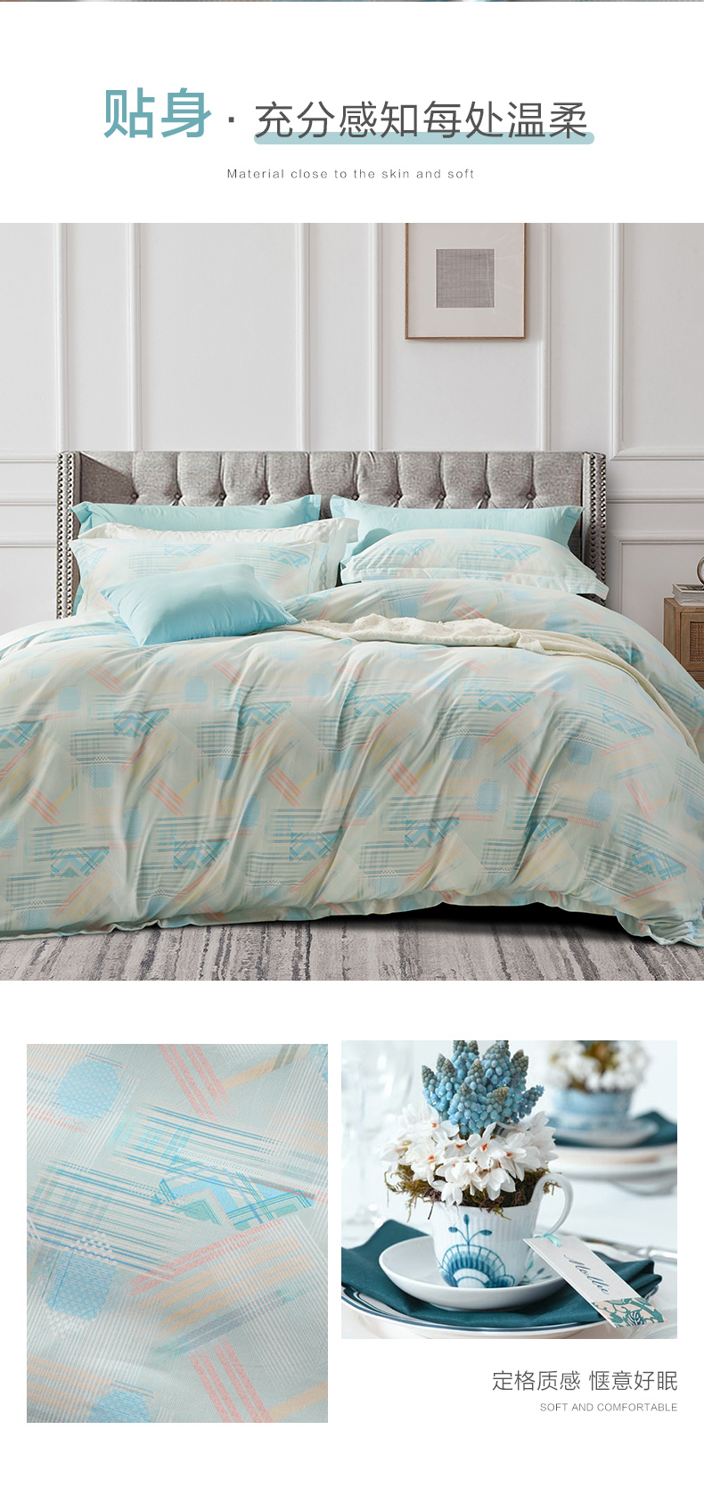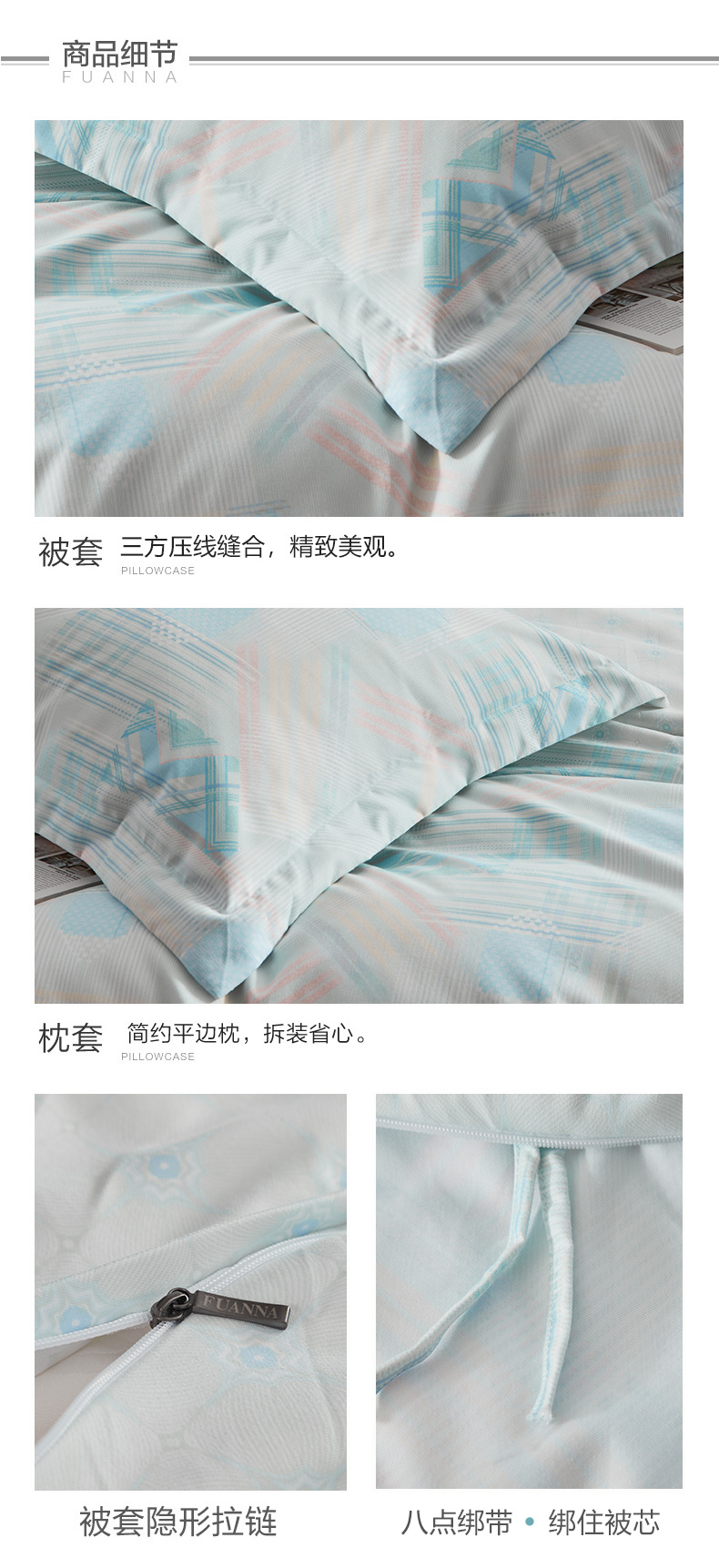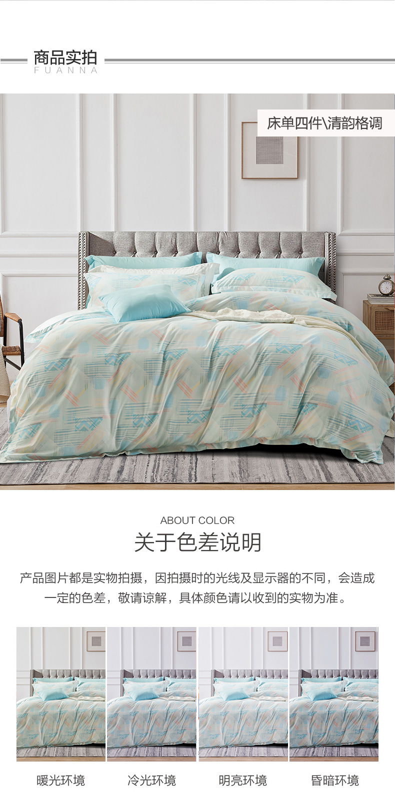 富安娜磨毛床单四件套/清韵格调/203*229cm(单位:套) 绿色