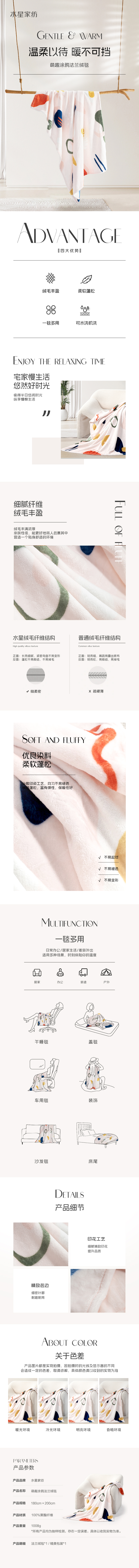 水星家纺 "萌趣涂鸦法兰绒毯 180cm×200cm"(单位:条) 图片色