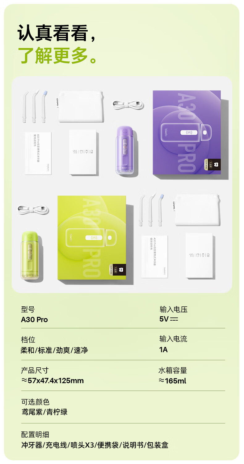 倍至(bixdo)胶囊冲牙器三代A30 Pro(单位:个) 鸢尾紫