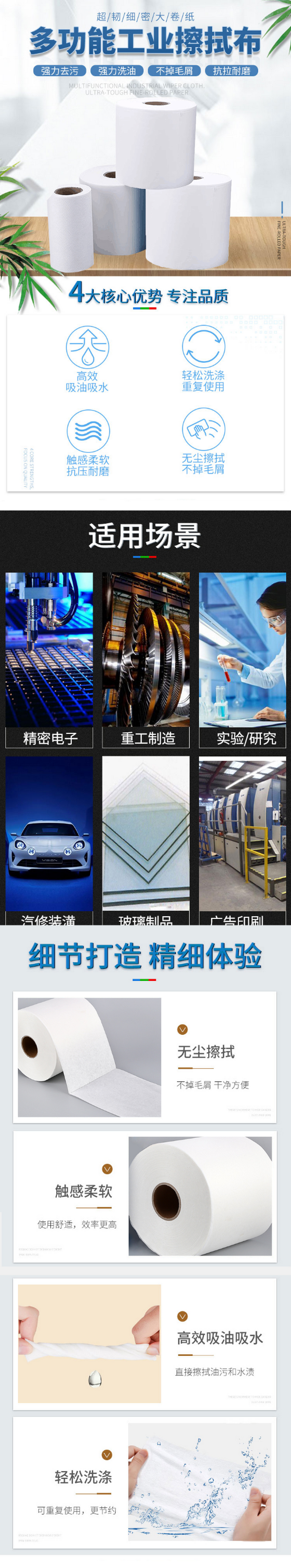 谋福 CNMF 8266 工业无尘擦拭纸 吸油纸无尘纸大卷纸静电除尘纸 500张/卷 (大卷纸 白色款) 白色