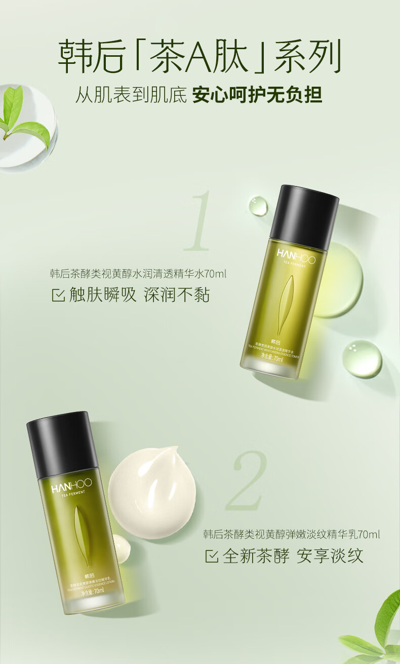 韩后茶酵类视黄醇弹嫩淡纹水乳组合70ml*2(单位:组) 柠绿色
