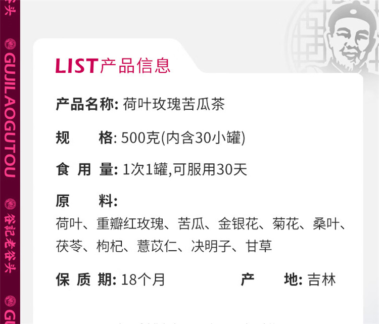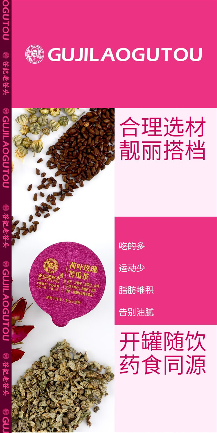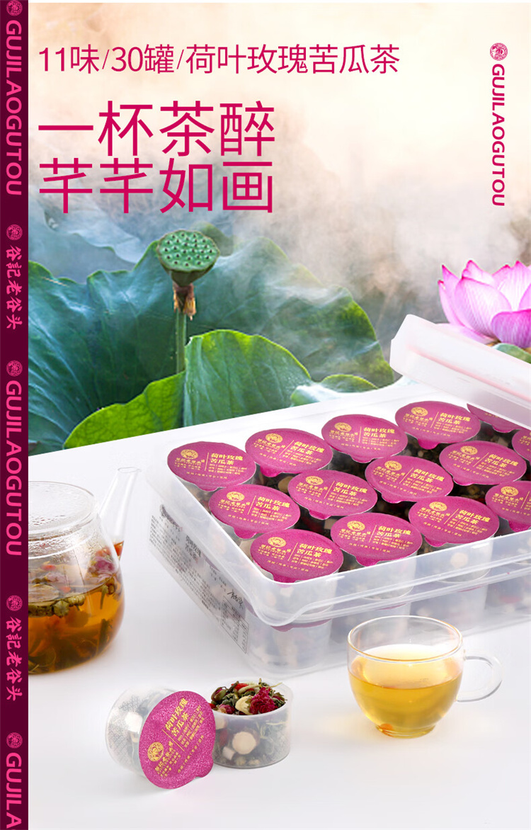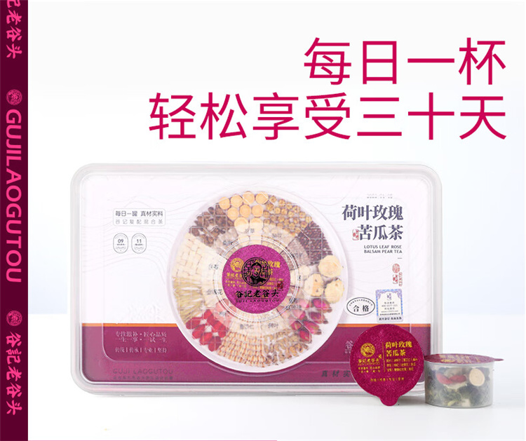 谷记老谷头 荷叶玫瑰苦瓜茶500g(内含30罐)盒