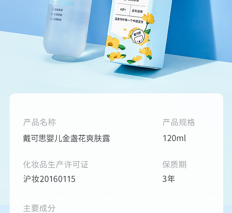 戴可思婴儿金盏花爽肤露120ml/瓶