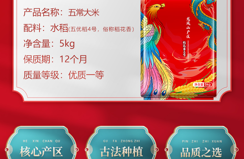 宫金穗大米五常大米稻花香2号东北大米新米5kg(单位:袋)