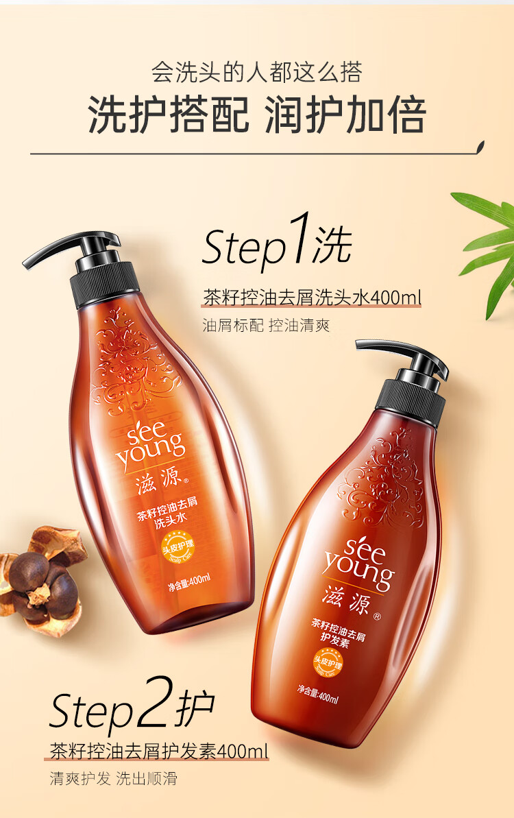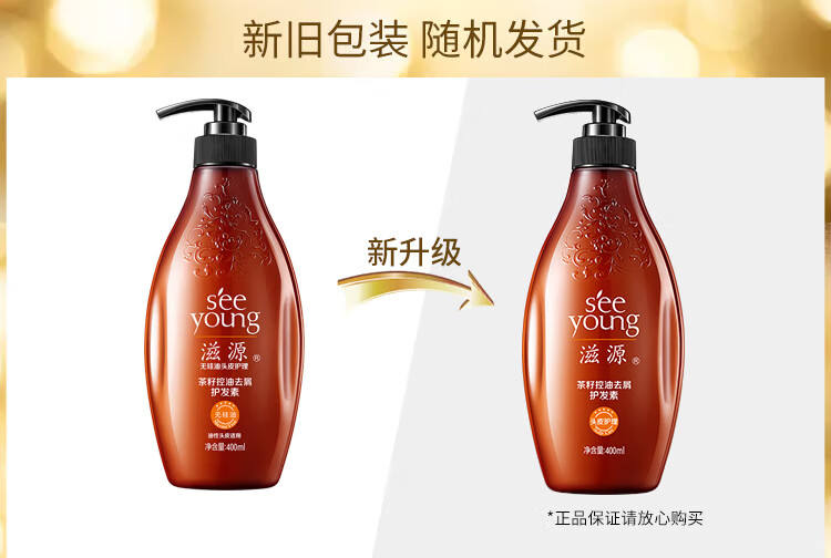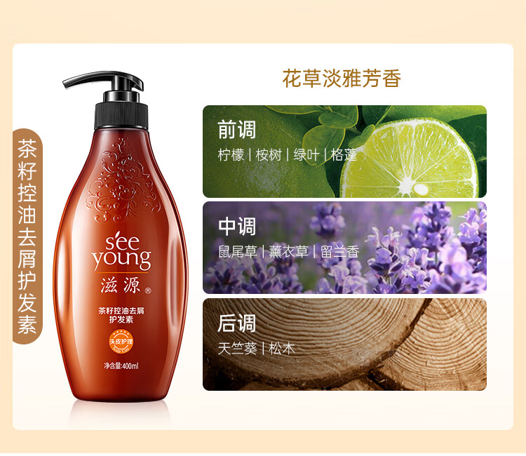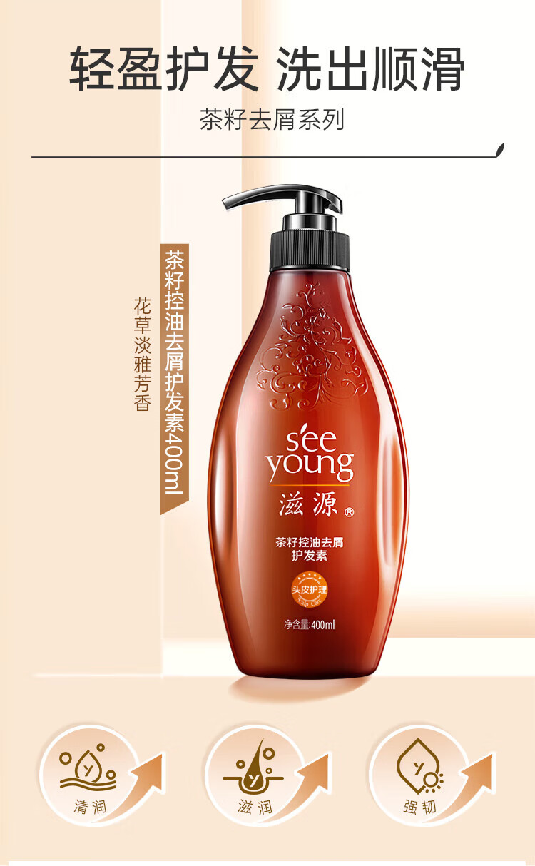 滋源(seeyoung)茶籽控油去屑护发素无硅油清爽强韧润泽男女士润发乳400ml(单位:瓶) 褐色