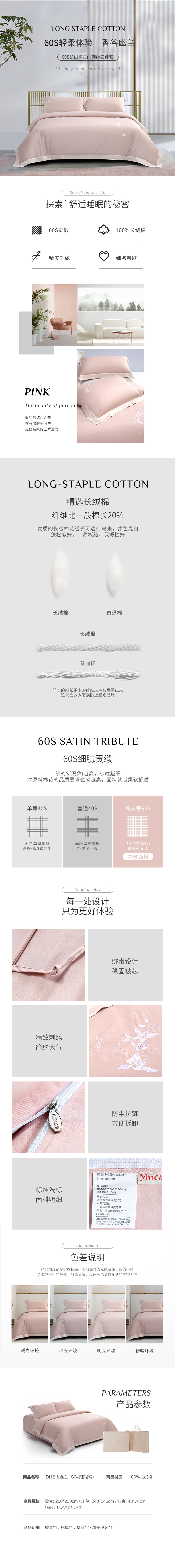 水星家纺 香谷幽兰60S长绒棉四件套(珊瑚粉) 200cm×230cm 适用1.5米床(单位:套) 粉色