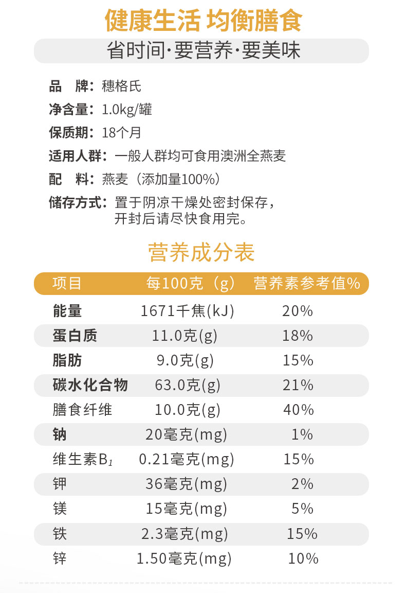 穗格氏澳洲全燕麦1000g/罐(单位:罐) 绿色