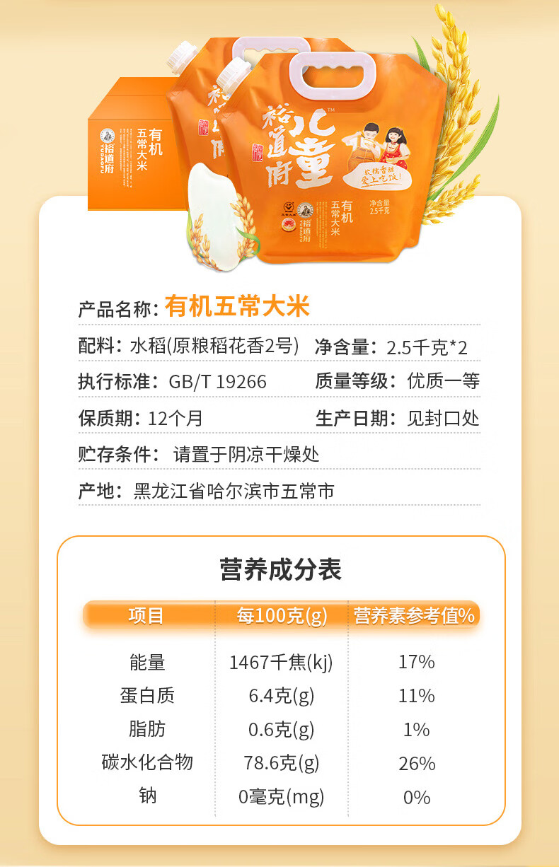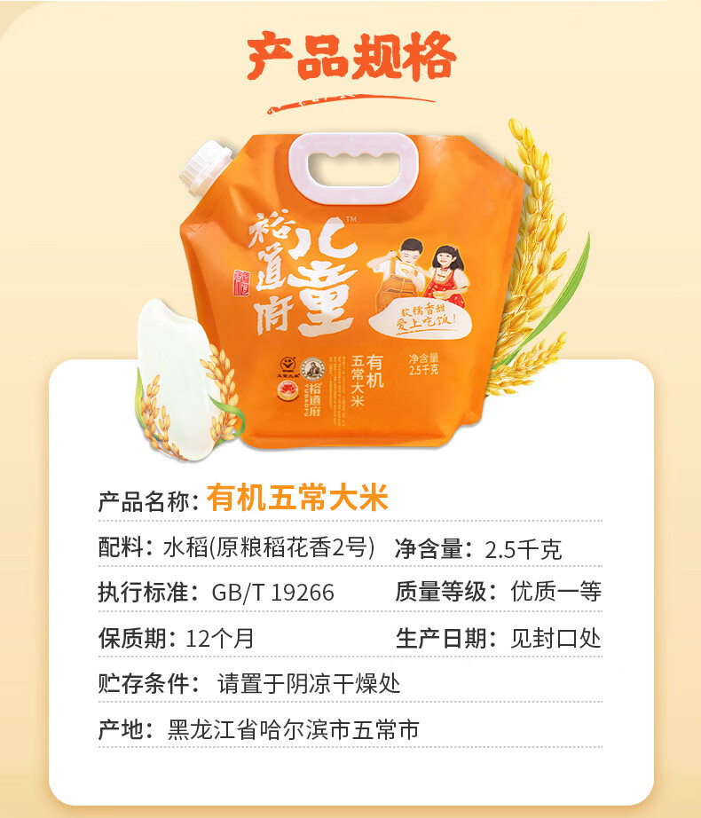 裕道府儿童有机五常大米2.5kg/袋 2.5kg