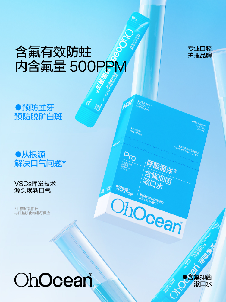 呼吸海洋含氟抑菌除口臭持久留香便携条装防蛀牙漱口水 10ml*20条/3盒 含氟抑菌