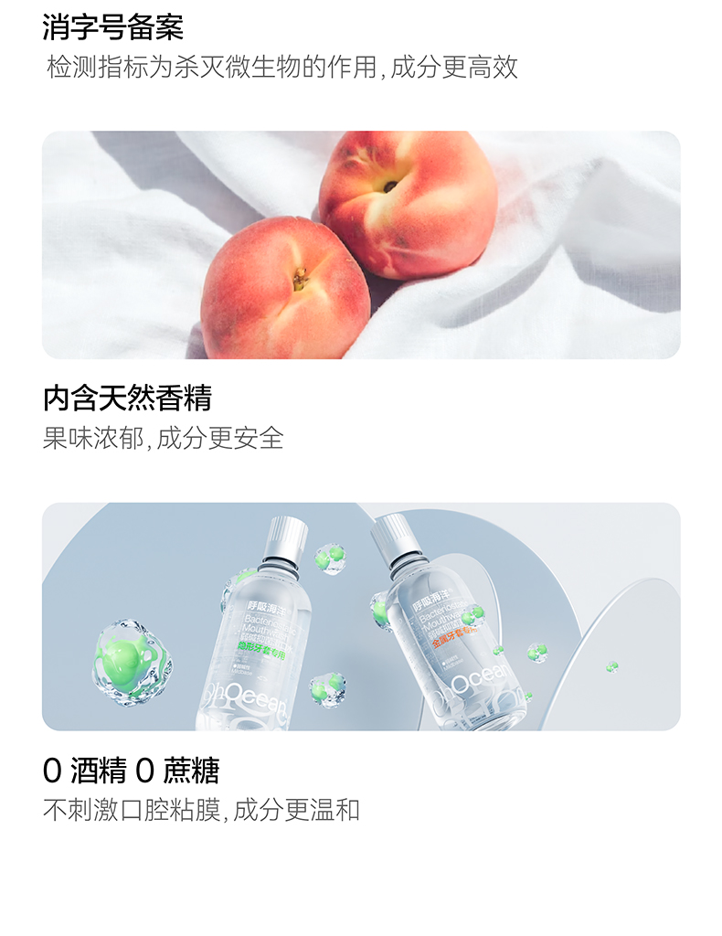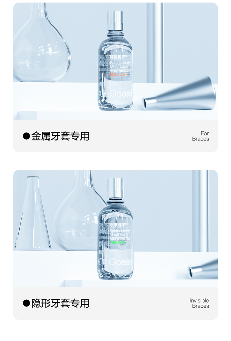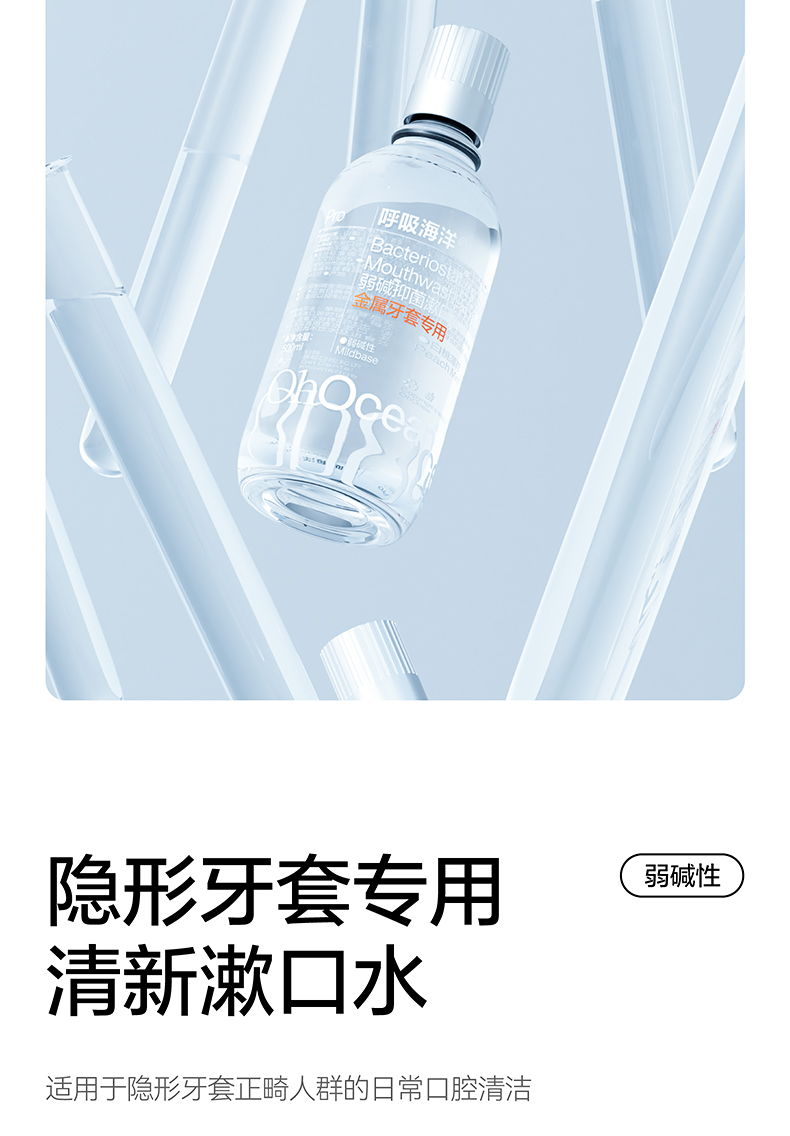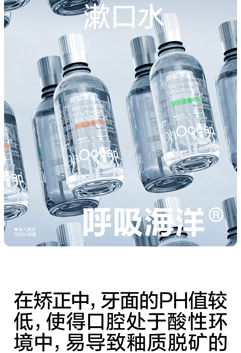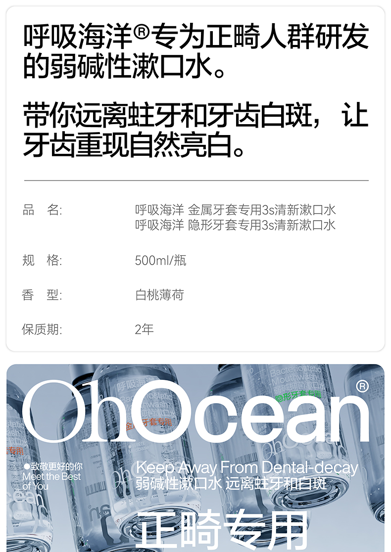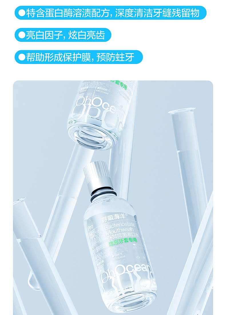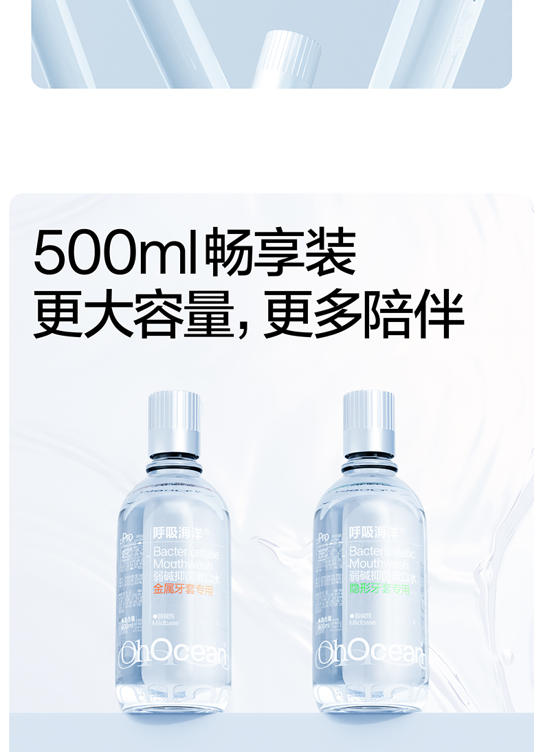 呼吸海洋漱口水正畸专用防蛀杀菌便携式瓶装清新口气除口臭 隐形牙套漱口水(瓶装) 500ml*2瓶 清新口气