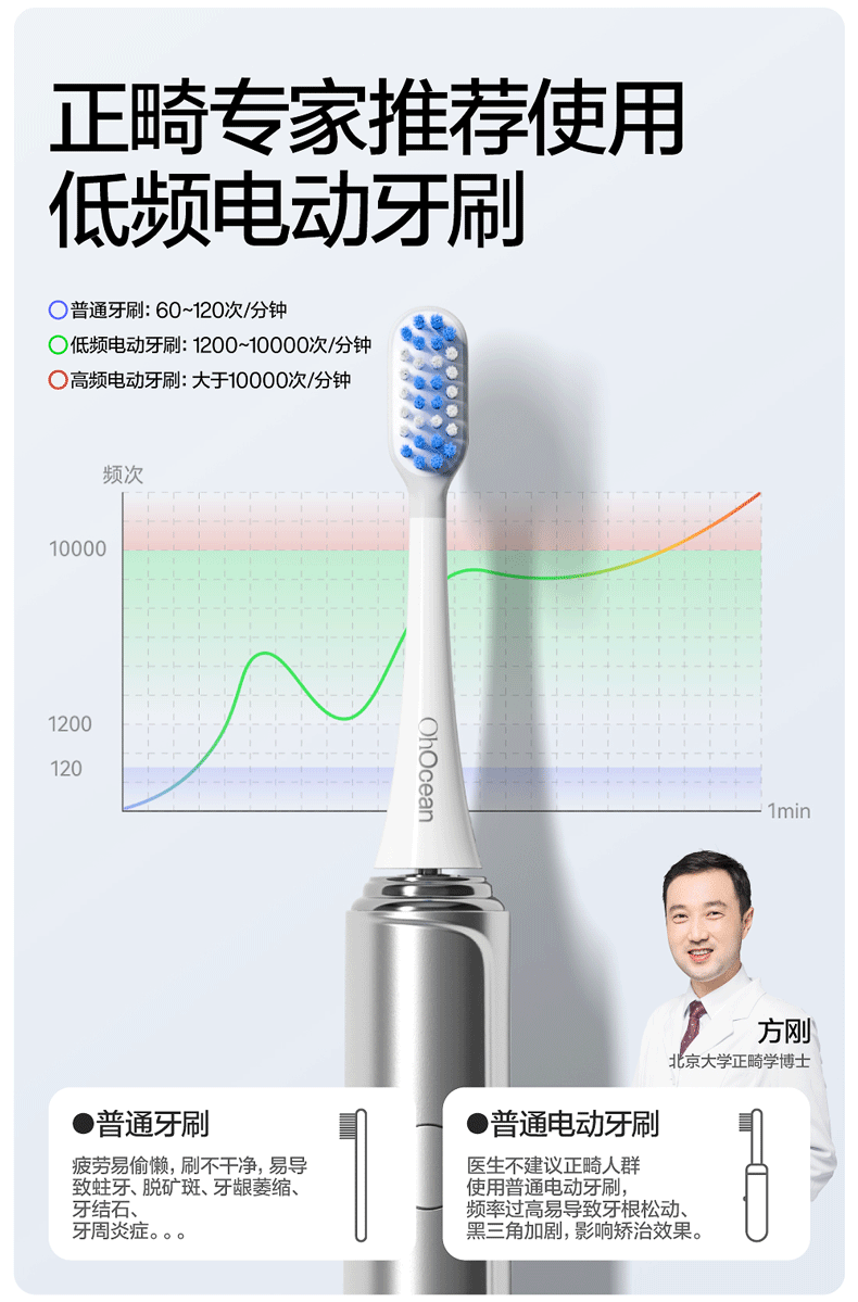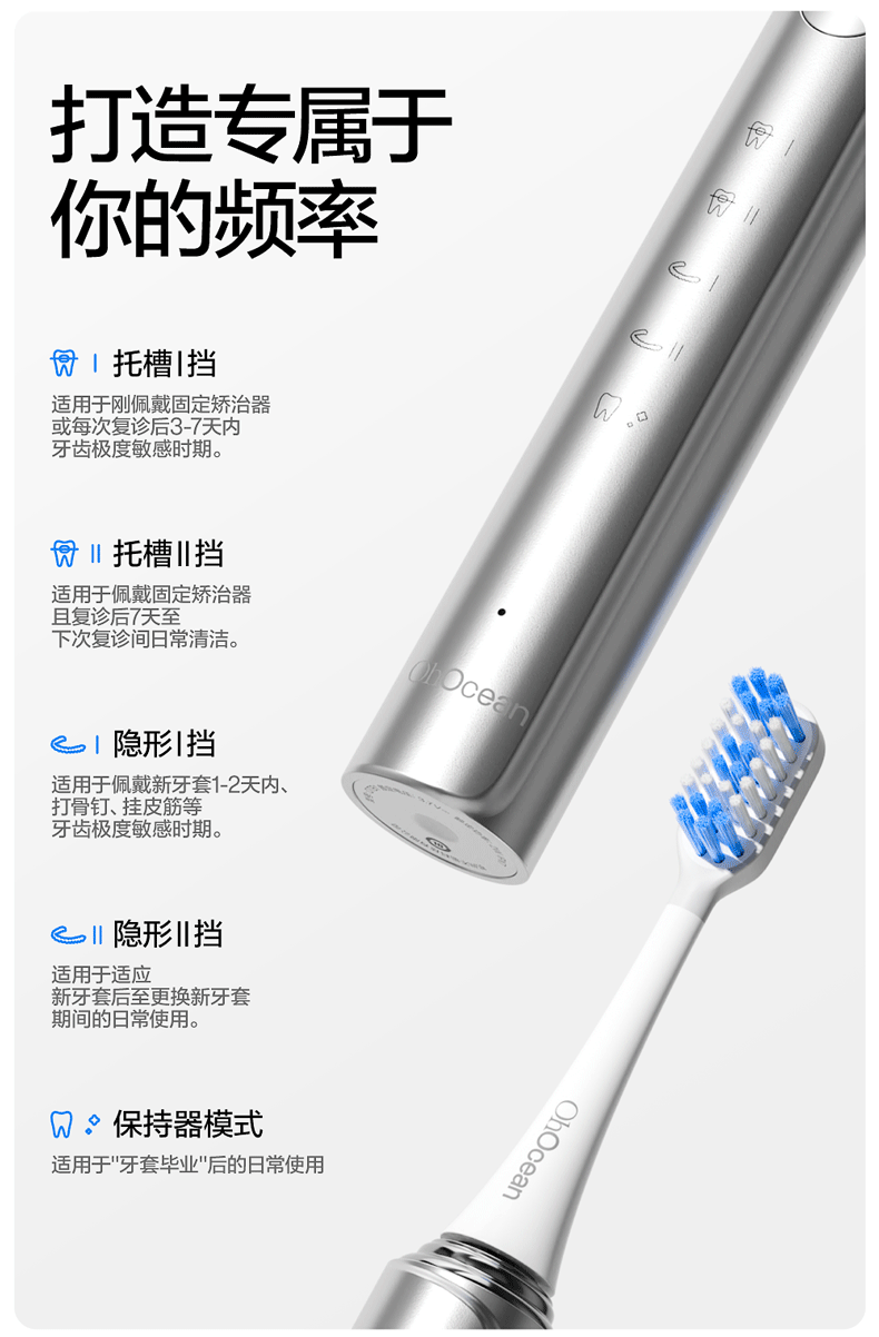 呼吸海洋低频电动牙刷成人正畸专用牙套矫正牙齿自动充电声波牙刷/3支 电动牙刷