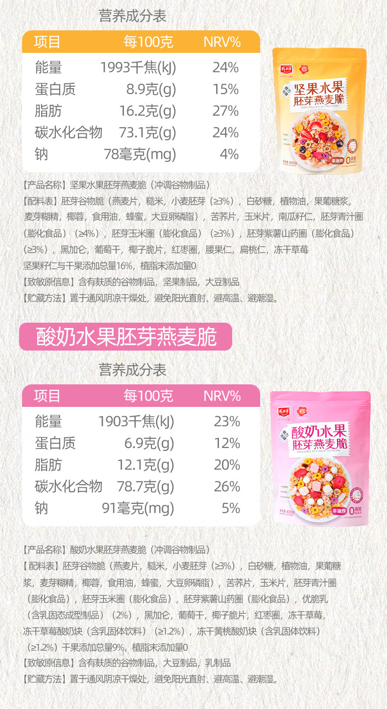 精力沛酸奶水果胚芽燕麦脆400g*2袋 400g*2袋
