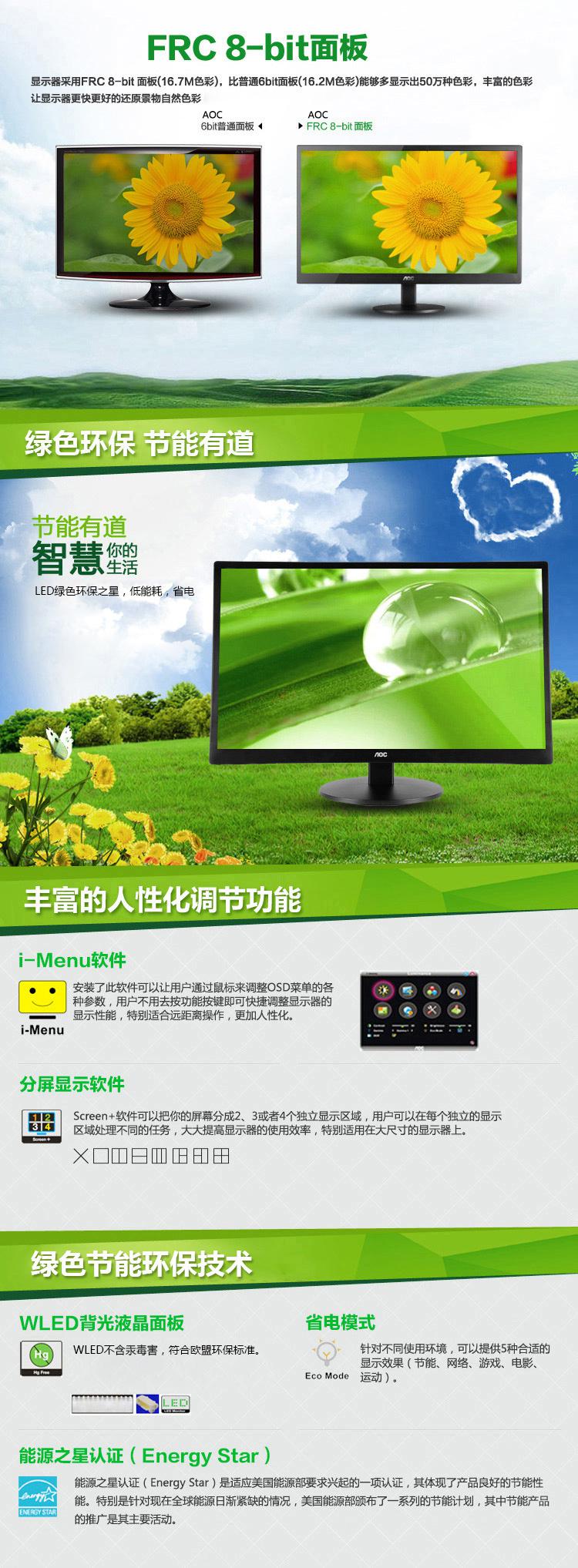 AOC电脑显示器E970SWN5 18.5英寸LED背光节能窄边框液晶电脑显示屏/台 黑色