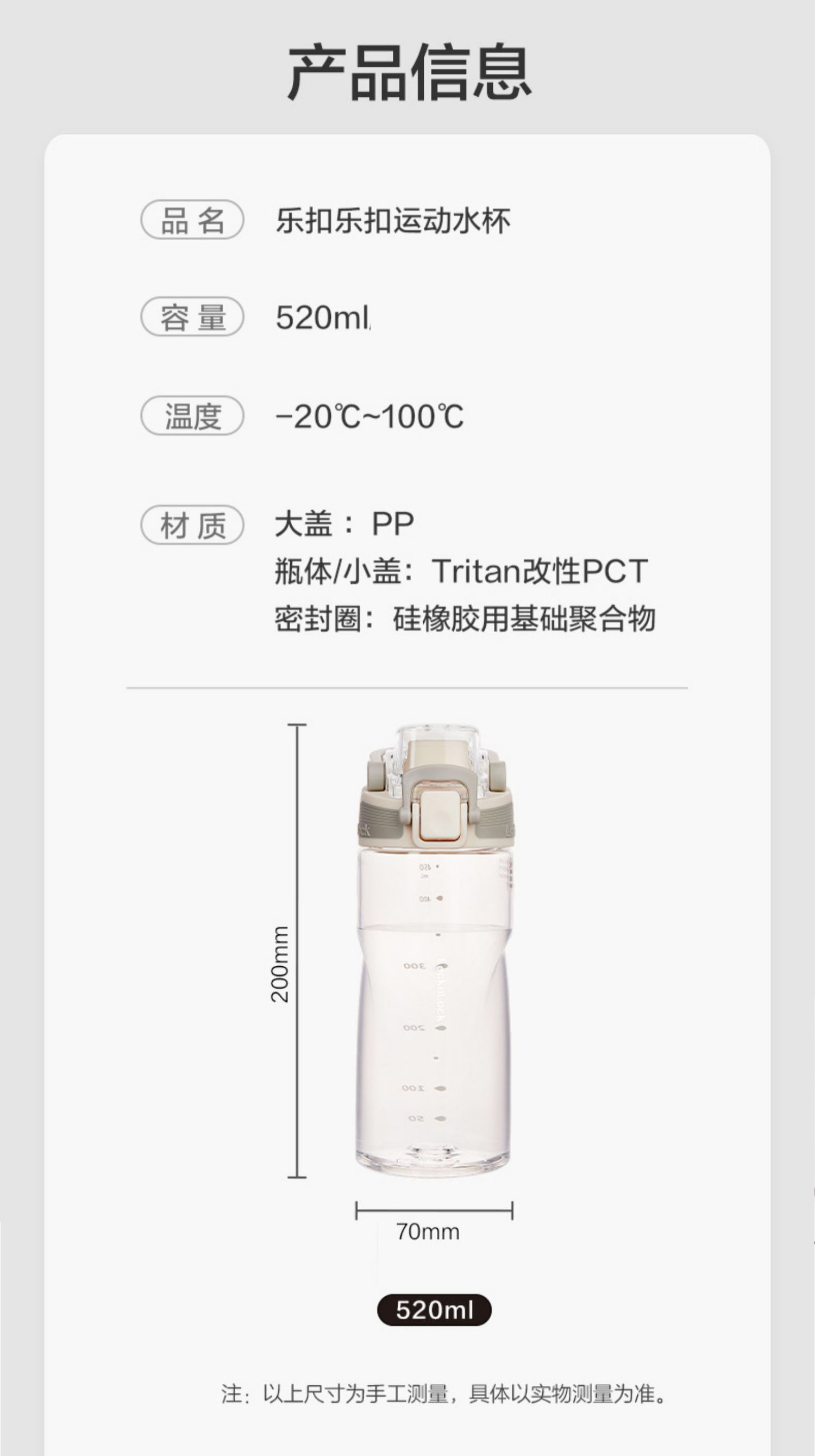 乐扣收腰运动水杯 ABF796 520ml(单位:个) 粉色