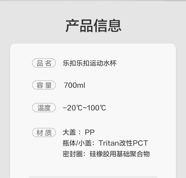乐扣收腰运动水杯 ABF797 700ml(单位:个) 粉色